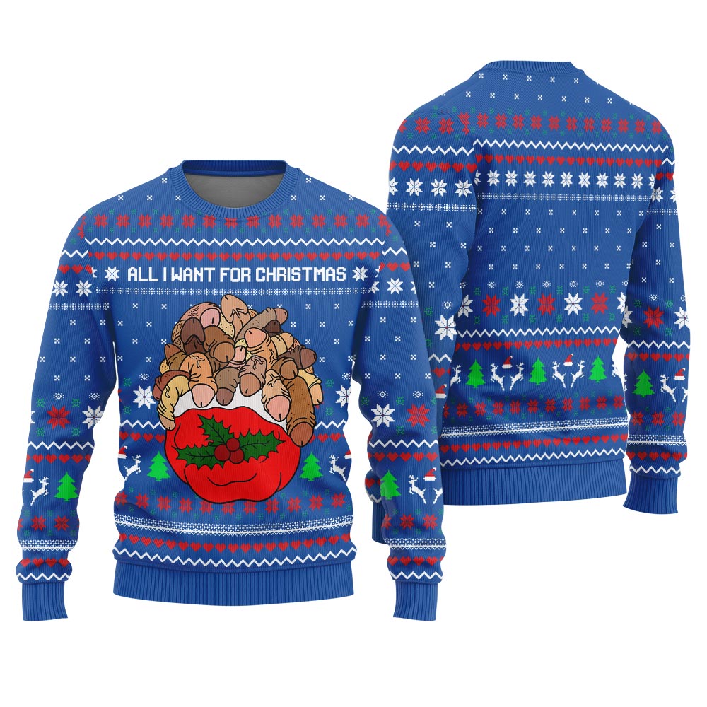 Show Quirky Style in All I Want For Christmas Is Dickmas Ugly Christmas Sweater Naughty Royal