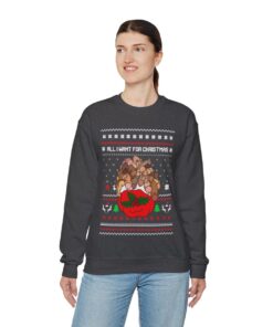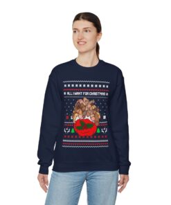 A Christmas sweater Funny that makes you chuckle is a need for joyous gatherings and gift-giving. This All I Want For Christmas Is Dickmas Ugly Christmas Sweatshirt Womens Dirty will turn heads and make you the star of the party whether you’re attending a family get-together or a corporate Christmas party. It’s also a great option for a present for people who like comedy and carefree enjoyment. Observe your dear ones as they open their gifts and erupt into giggles upon seeing their new best friend’s sweater.