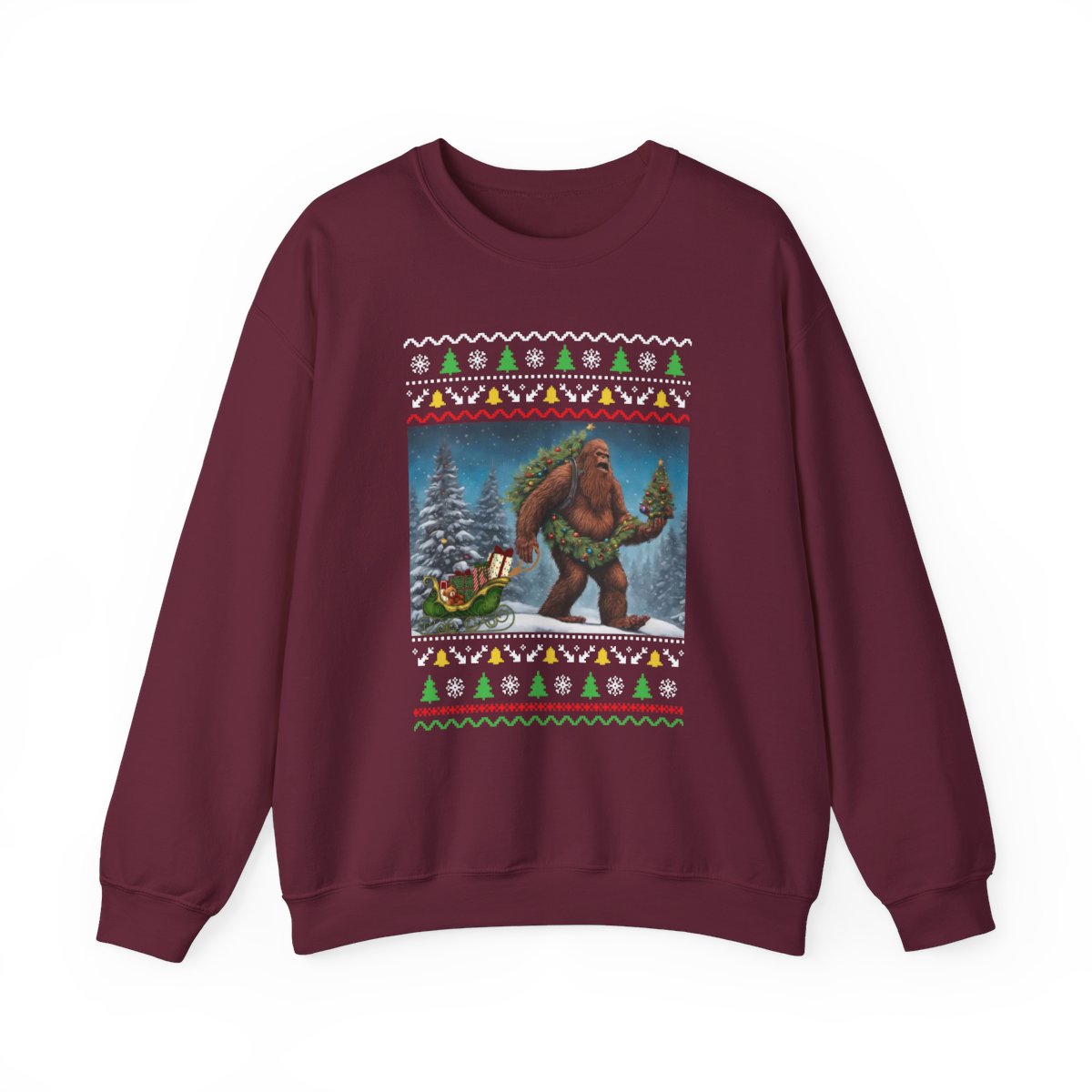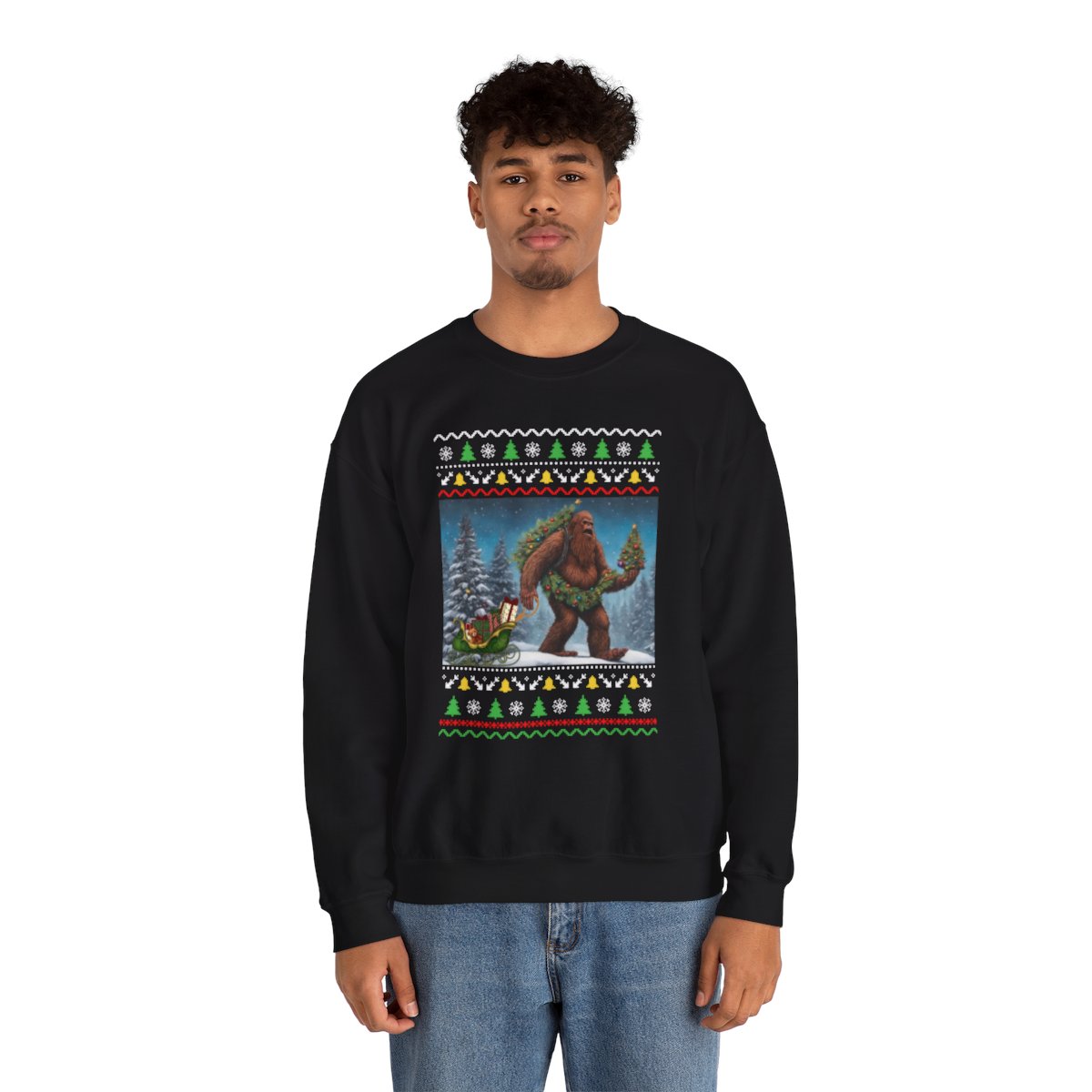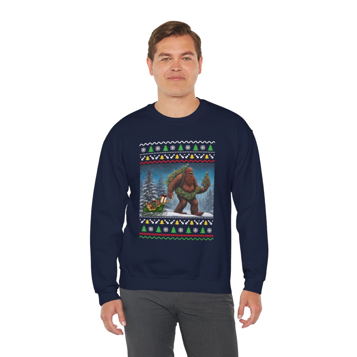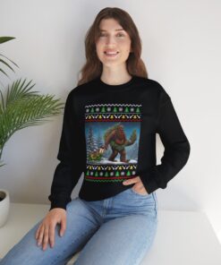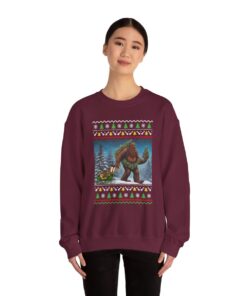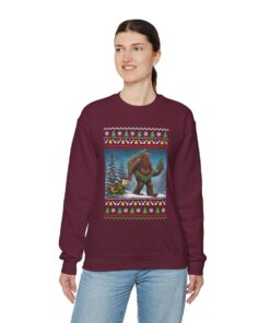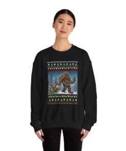 Prepare for seasonal happiness with our impressive Believe In Bigfoot Funny Ugly Christmas Sweatshirt For Unisex! Make a statement at any holiday gathering with a funny sweater.