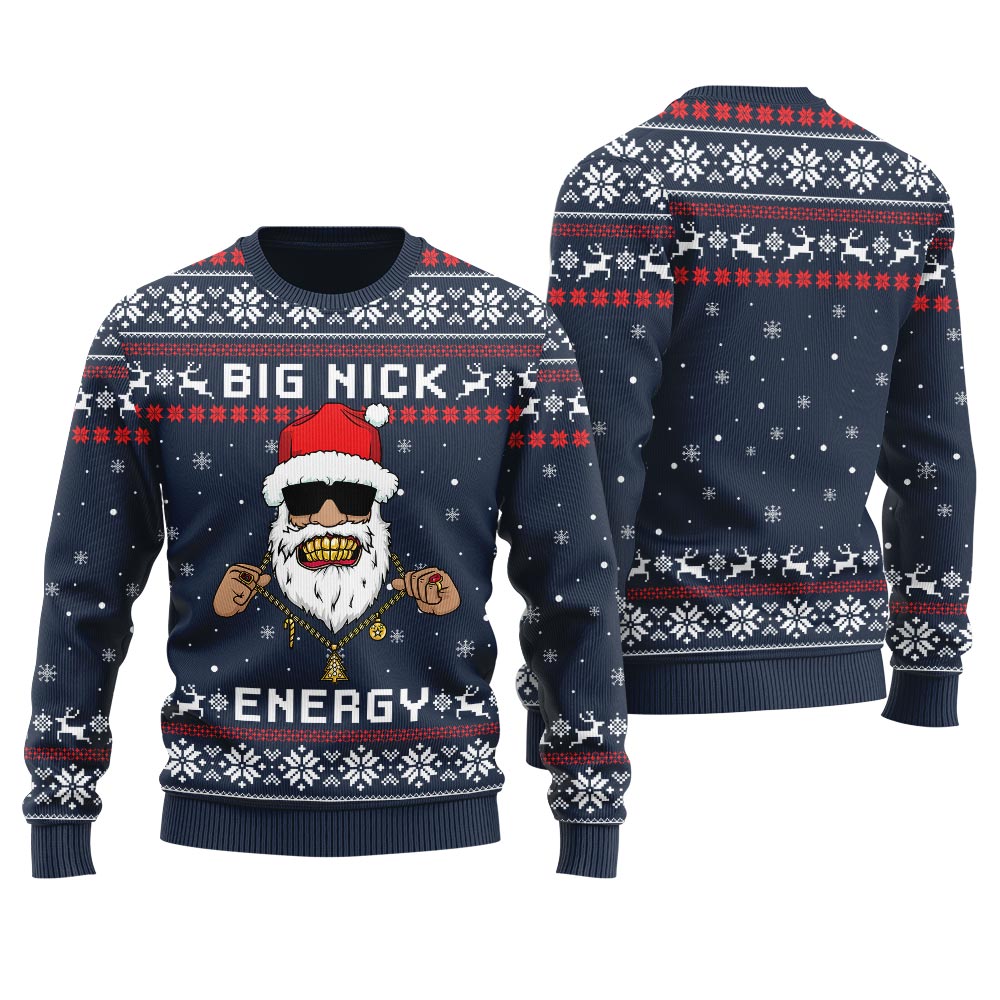 Big Nick Energy Cool Santa Ugly Christmas Sweater Navy