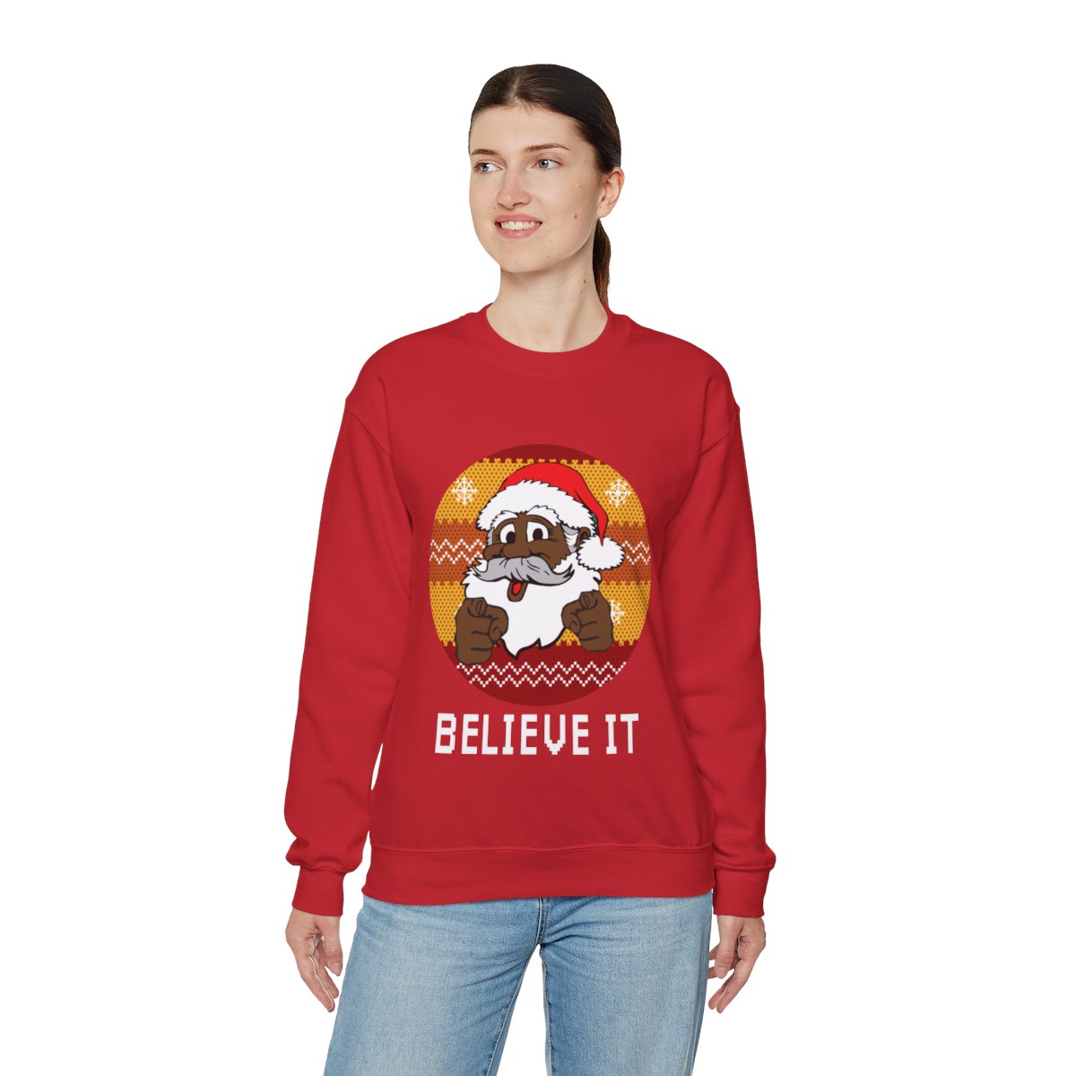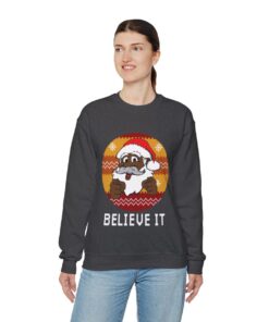This Black Santa Believe It Ugly Christmas Sweatshirt Womens has the power to unite souls and weave memories that shall be cherished for a lifetime. Why settle for a dull and drab sweater when you can don one that ignites conversations and brings a sparkle to the eye? Our Black Santa Believe It Ugly Christmas Sweatshirt Womens has been meticulously crafted with utmost care to offer not only comfort but also a generous dose of panache. The distinctive and humorous designs adorning these sweaters are guaranteed to capture the attention of all who lay eyes on them!