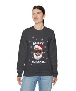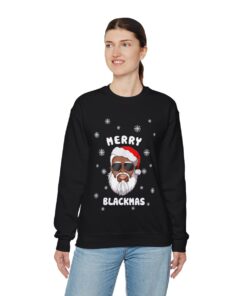Black Santa Merry Xmas Ugly Christmas Sweatshirt Womens