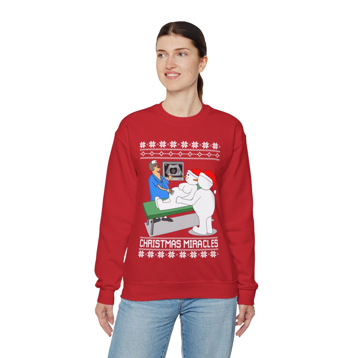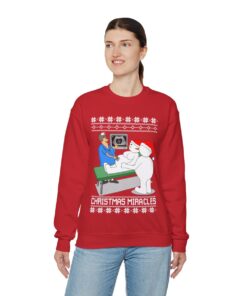 These sweaters may spark fascinating conversations and are a great way to flaunt your sense of humor. Imagine the grins and chuckles filling the room when you come in wearing one of our eye-catching Christmas Miracles Snowman Ugly Christmas Sweatshirt Womenss. You’ll instantly become the life of the party, making everyone happy and leaving enduring memories in your wake.