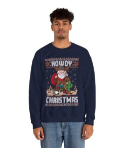 It is Cowboy Santa Christmas Sweatshirt For Men’s season to be ugly and funny!