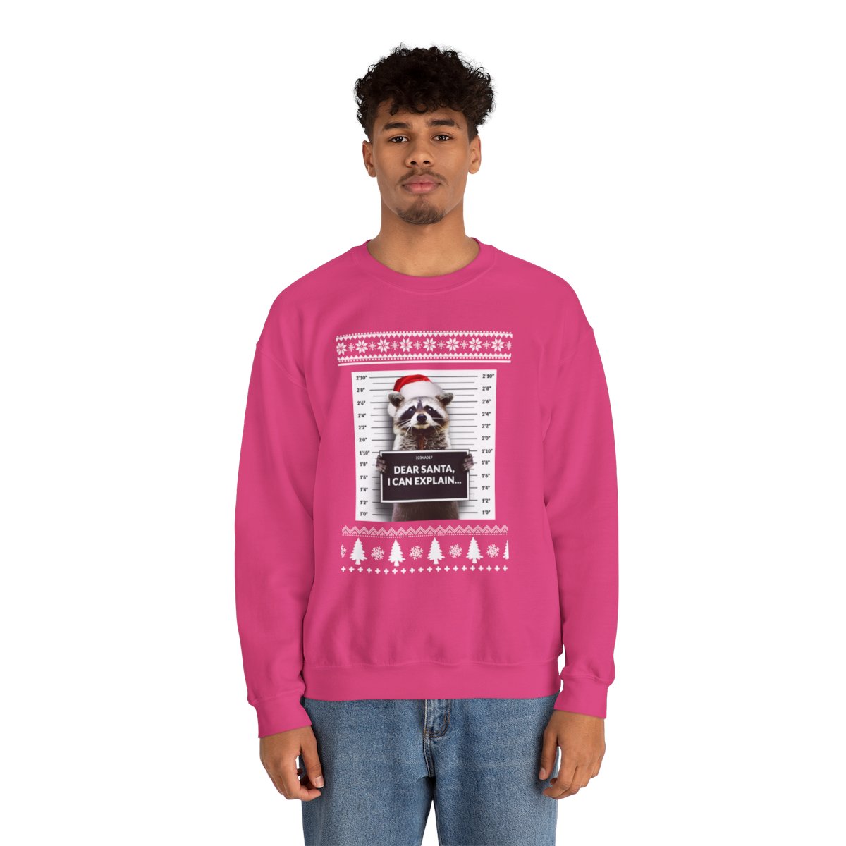 ​Don’t wait until the last minute to shop. Embrace the holiday spirit, create memories, and spread some festive fun with this Dear Santa I Can Explain Raccoon Ugly Xmas Sweatshirt!