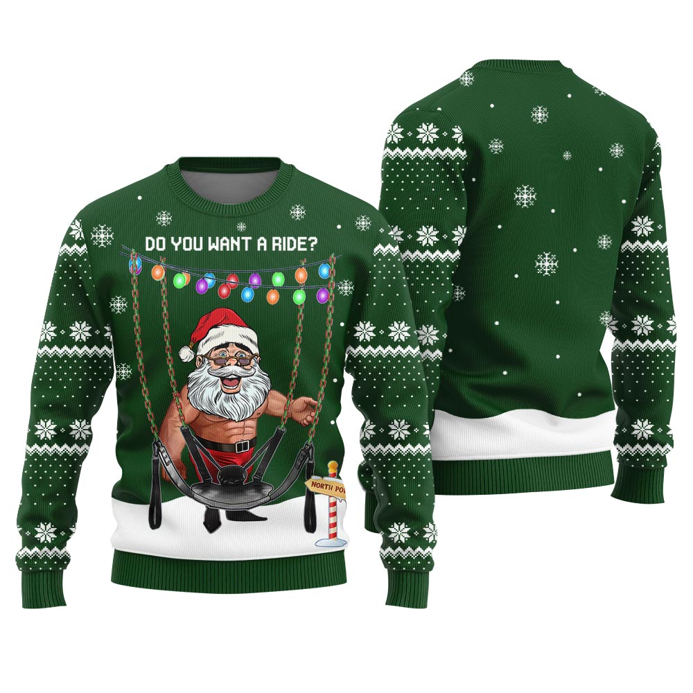 Do You Want A Ride Funny Ugly Christmas Sweater Forest Green