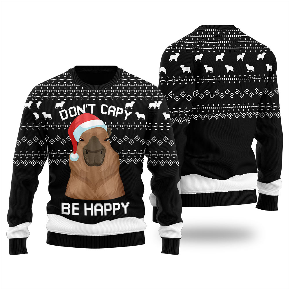 Spread the Christmas Spirit with Dont Capy Be Happy Capybara Ugly Christmas Sweater Black