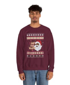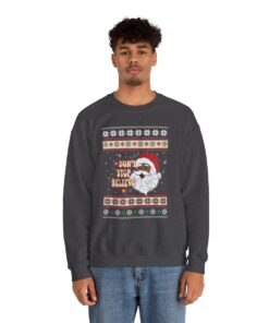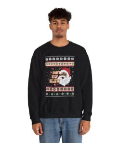Whether you’re attending an office shindig, a family gathering, or simply spreading joy wherever you go, embrace the charm of our Dont Stop Believin Black Santa Claus Christmas Sweatshirt For Men. Head on over to Ugly Christmas Sweater Canada and prepare to be dazzled by our intriguing variety. Trust me, my friends, you won’t be disappointed.