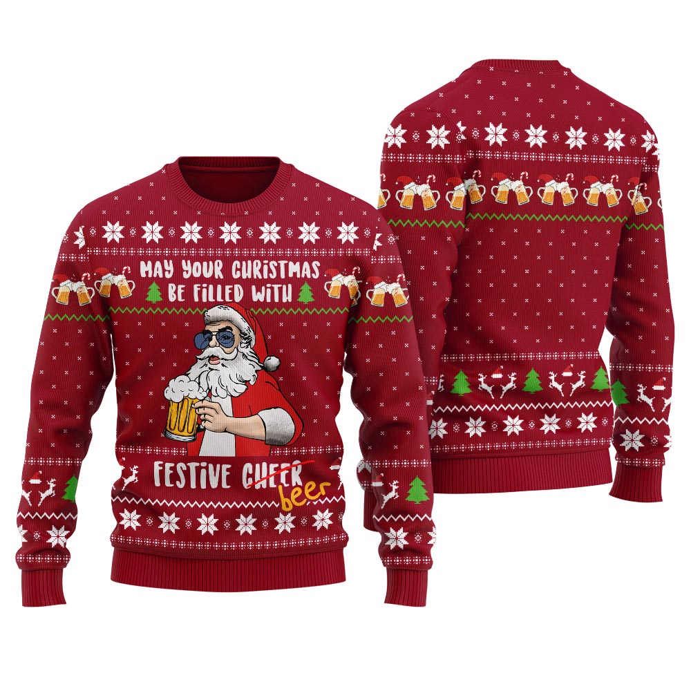 Prepare for seasonal happiness with our impressive Drinking Beer Funny Ugly Christmas Sweatshirt Cardinal Red! Make a statement at any holiday gathering with a funny sweater.