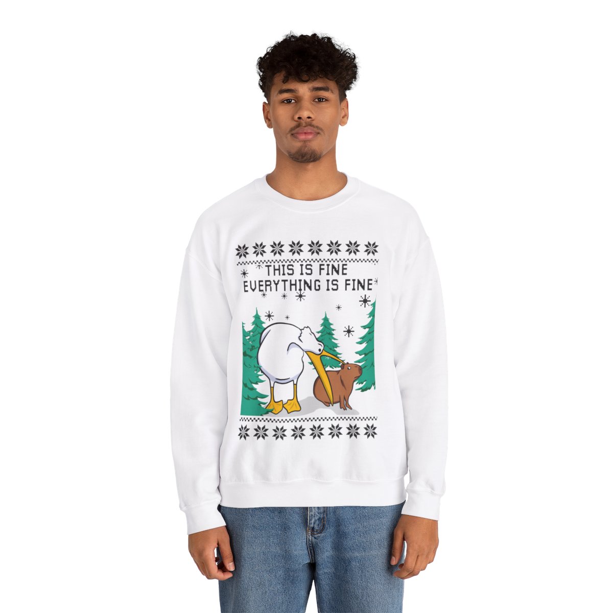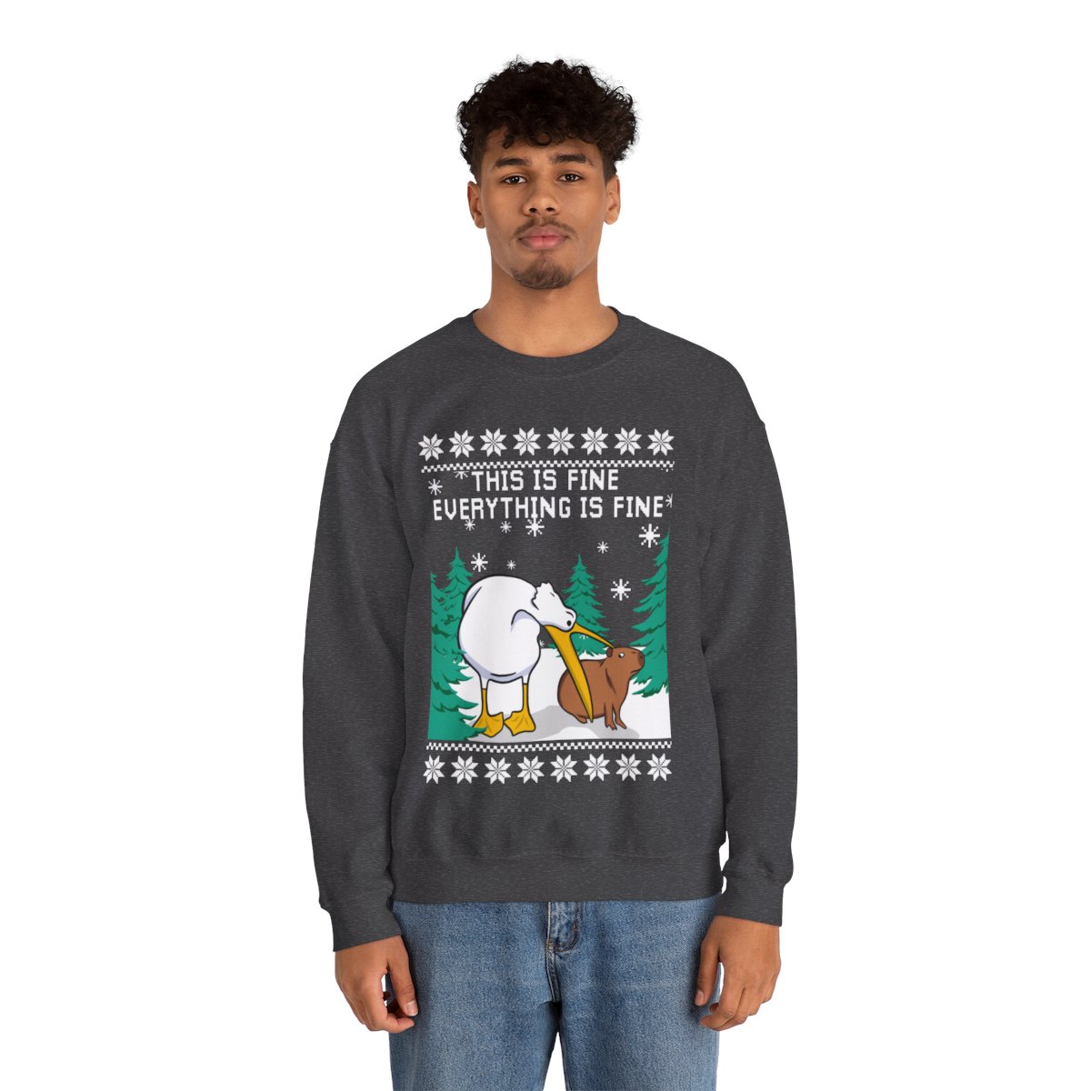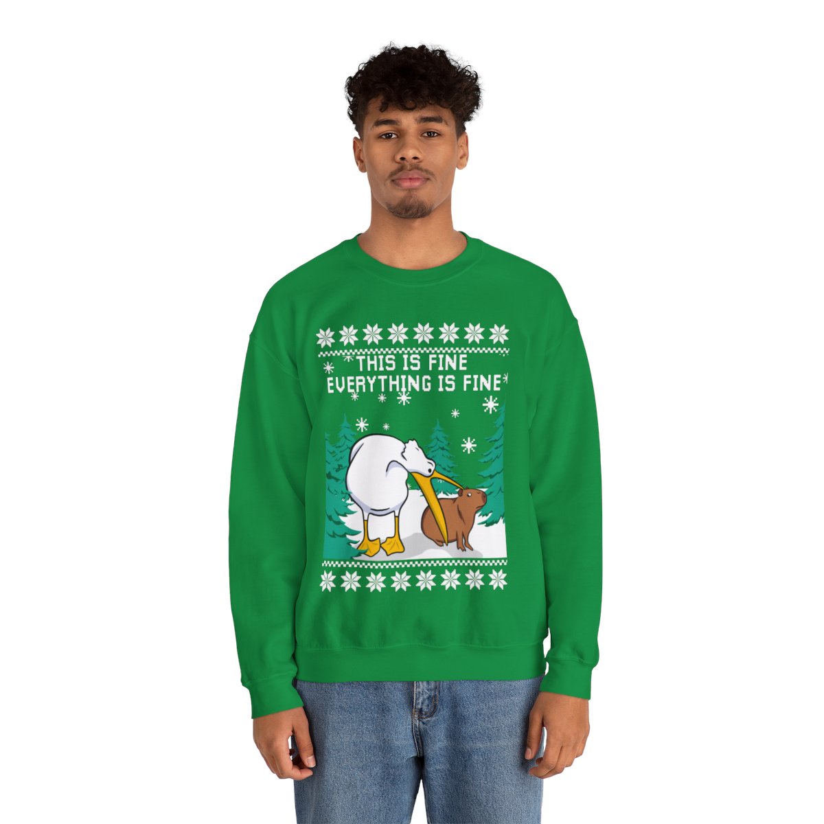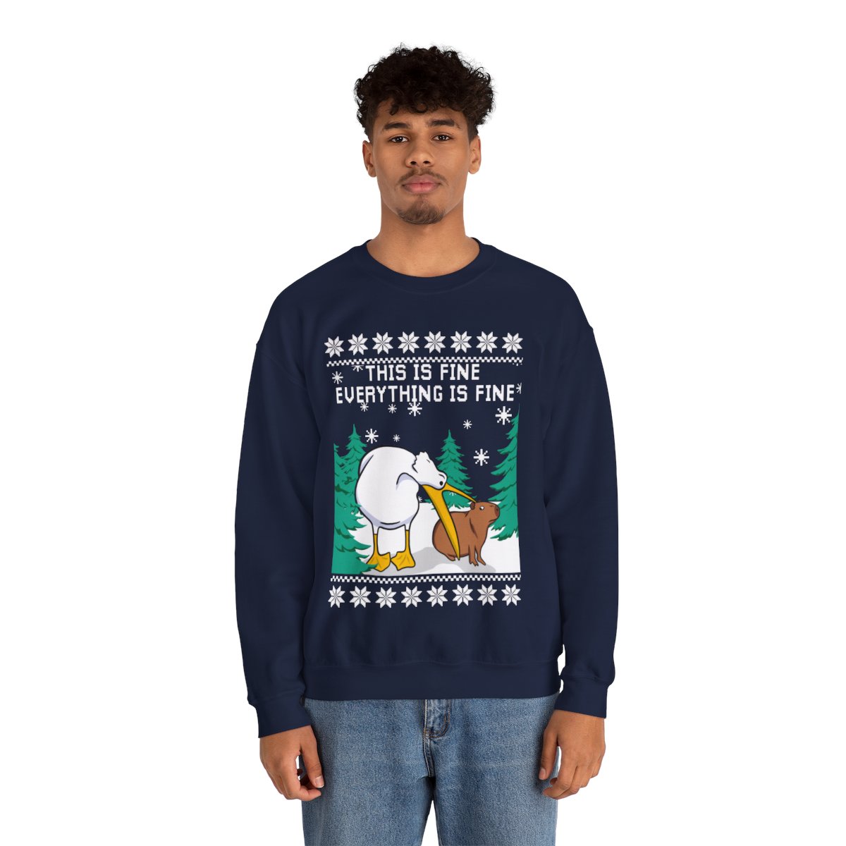 Everything Is Fine Capybara Christmas Sweatshirt For Men