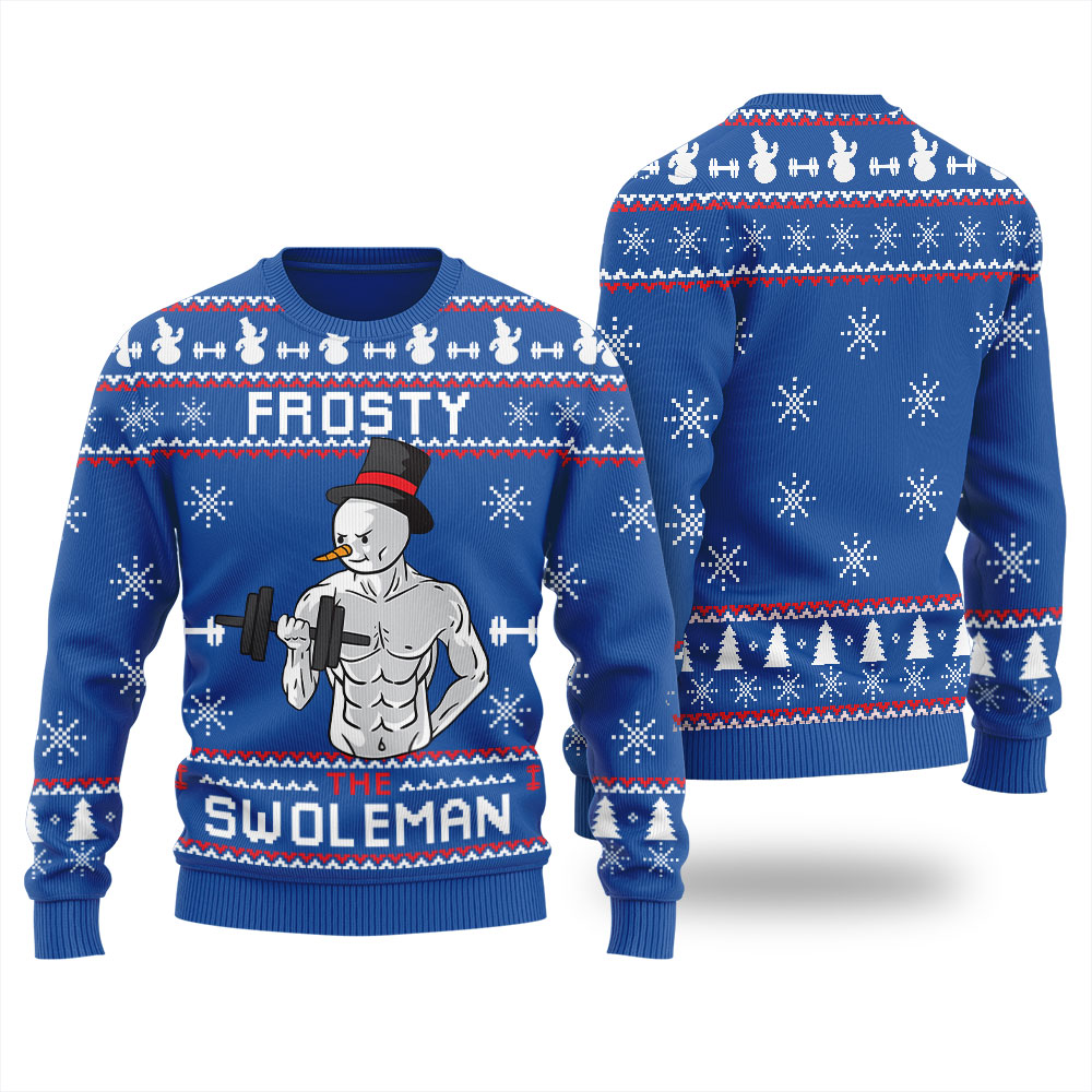 Rock the Christmas season with Frosty Swoleman Ugly Christmas Sweater Royal
