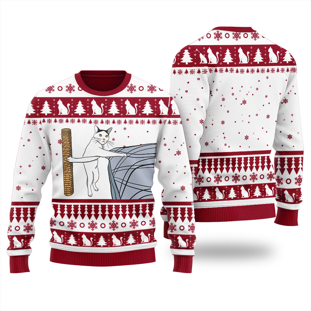Make Your Holiday More Outstanding With Funny Cat Scratching Ugly Christmas Sweater Cardinal Red!