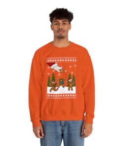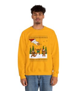 During the holidays, wearing ugly Christmas sweaters has come to be associated with cheer and goodwill. They make the person wearing them and everyone around them smile. Imagine entering a gathering filled with individuals wearing the most ridiculous sweaters possible, fostering a joyful and carefree mood. Parties with ugly sweaters have grown in popularity as a way for loved ones to get together, rejoice, and show off their colorful wardrobe selections. Why not wear your very own Funny Gingerbread Snap Ugly Xmas Sweatshirt to join in on the fun and share some holiday cheer?