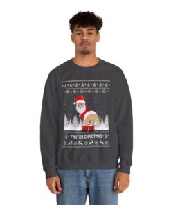 Why not have fun with your friends and family? A Christmas sweater party is an excellent way to get everyone into the holiday spirit. Encourage guests to wear the brightest Funny Santa Ugly Christmas Sweatshirt For Women. To heighten the competition, you might even provide a reward for the ‘ugliest’ sweater.