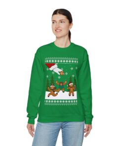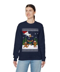 During the holidays, wearing ugly Christmas sweaters has come to be associated with cheer and goodwill. They make the person wearing them and everyone around them smile. Imagine entering a gathering filled with individuals wearing the most ridiculous sweaters possible, fostering a joyful and carefree mood. Parties with ugly sweaters have grown in popularity as a way for loved ones to get together, rejoice, and show off their colorful wardrobe selections. Why not wear your very own Gingerbread Oh Snap Ugly Christmas Sweatshirt Womens to join in on the fun and share some holiday cheer?