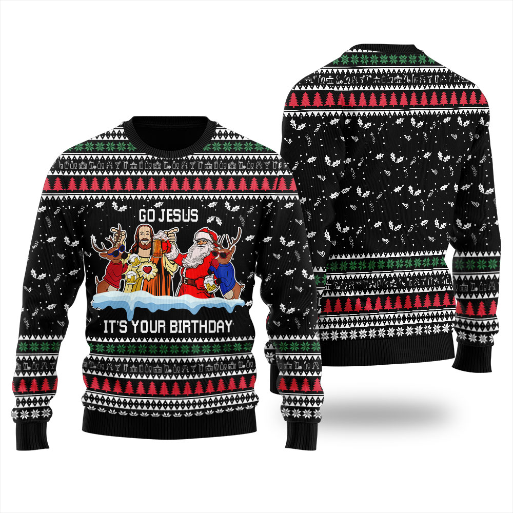 Go Jesus It’s Your Birthday Ugly Christmas Sweater Black