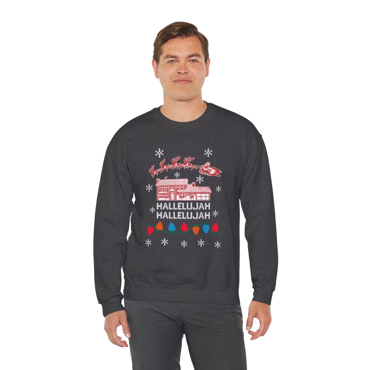 Rather of settling for an ordinary ugly Christmas sweater, why not proudly display your Canadian identity? Our Christmas Sweatshirt Ugly are full with iconic Canadian designs, such as maple leaves, moose, beavers, and even our beloved Mounties. This Hallelujah Christmas Vacation Ugly Xmas Sweatshirt is sure to draw attention and transform you into the life of the party with their eye-catching patterns and vibrant colors.
