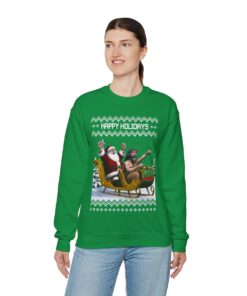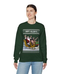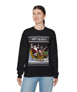 These sweaters may spark fascinating conversations and are a great way to flaunt your sense of humor. Imagine the grins and chuckles filling the room when you wear one of our eye-catching Happy Holidays Santa Jesus Ugly Christmas Sweatshirt Womens. You’ll instantly become the life of the party, making everyone happy and leaving enduring memories in your wake.