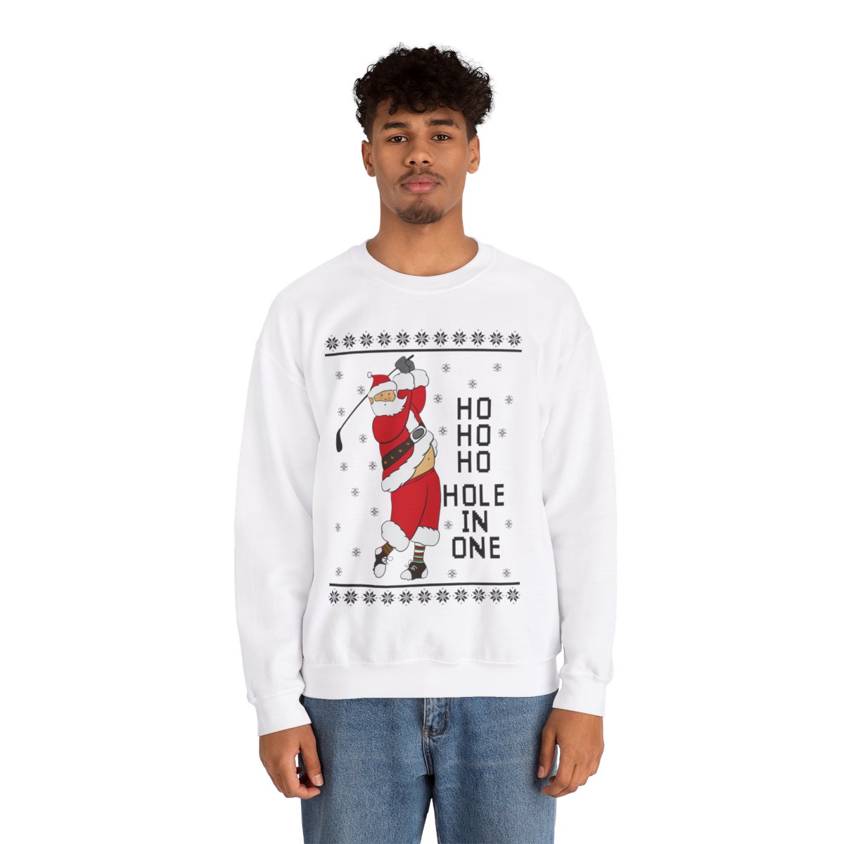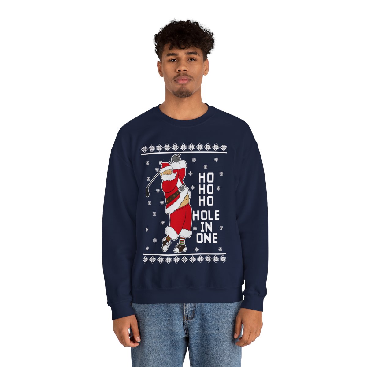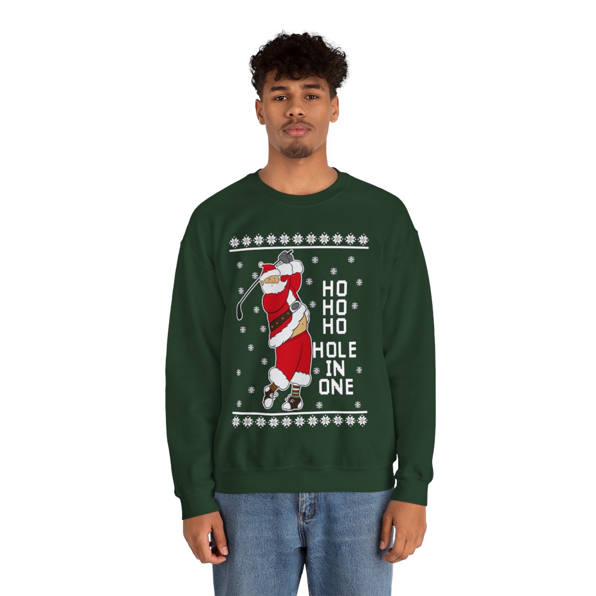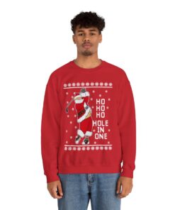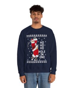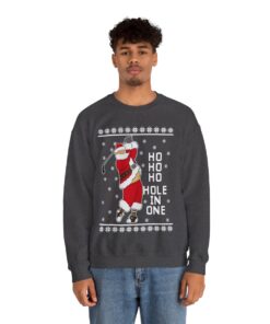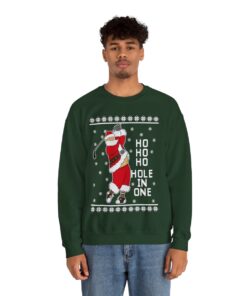 Come see our Ho Ho Ho Hold In One Santa Christmas Sweatshirt For Men when you visit our store today. Make a statement, embrace the ugly, and let your festive spirit to radiate in all of its gloriously hideous splendor!