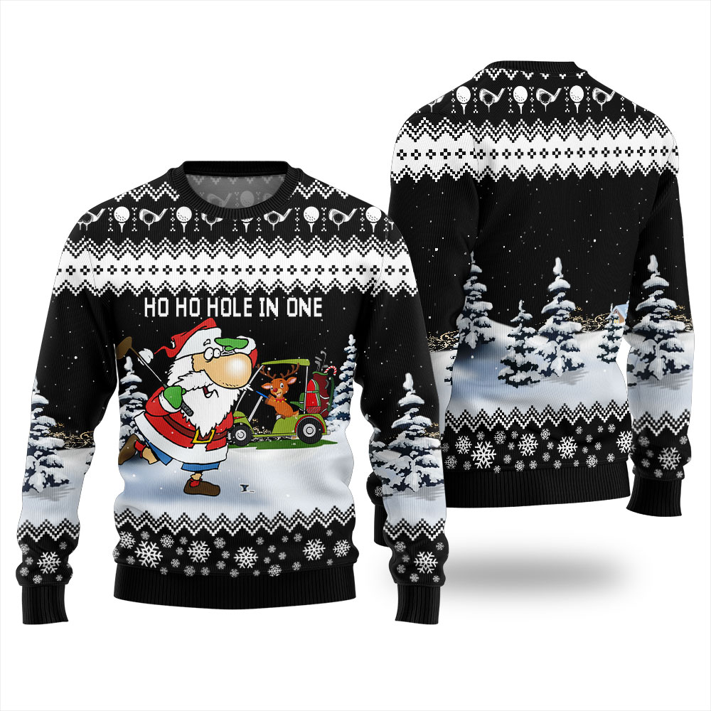 Make Your Holiday More Outstanding With HO HO HO Hole In One Funny Santa Ugly Christmas Sweater Black!