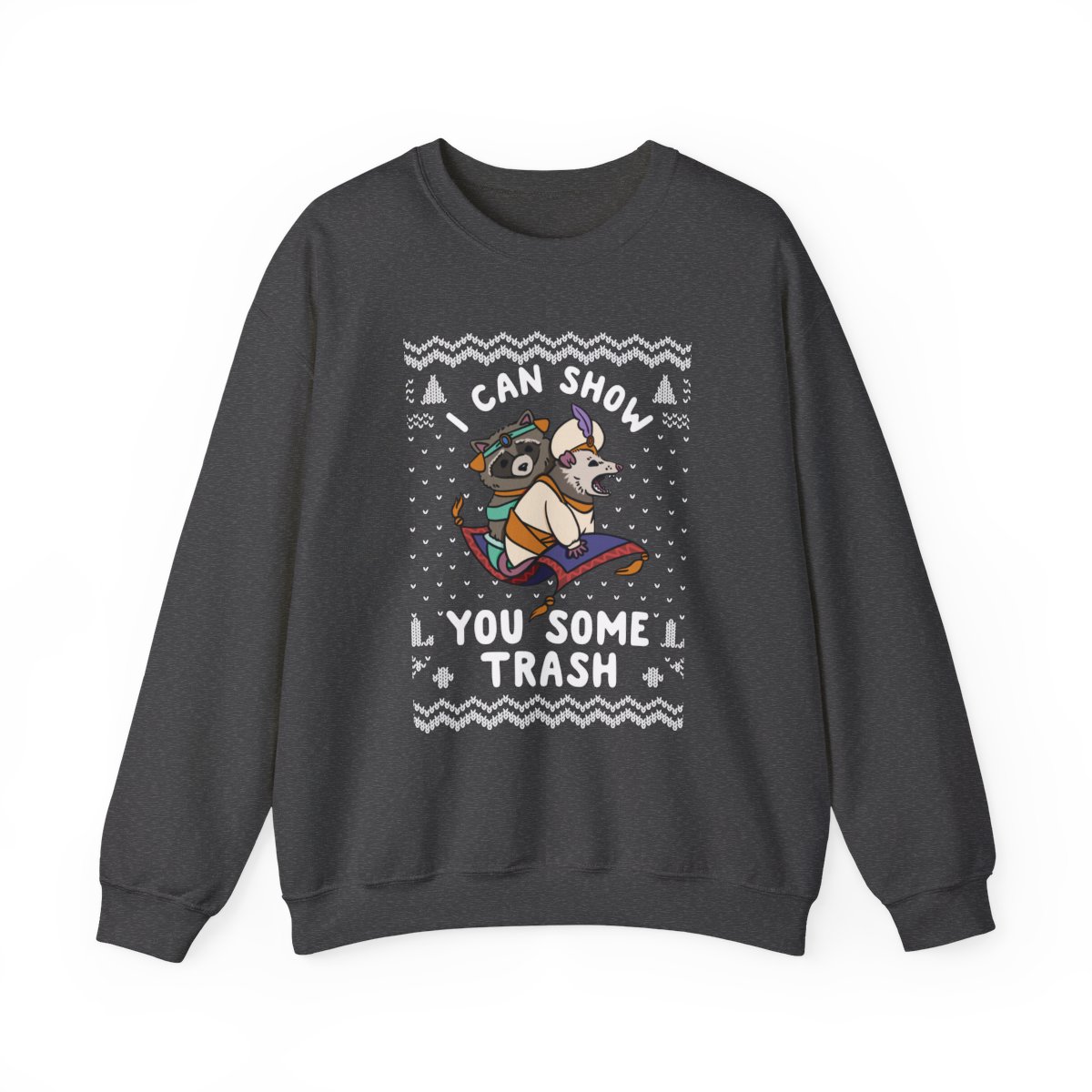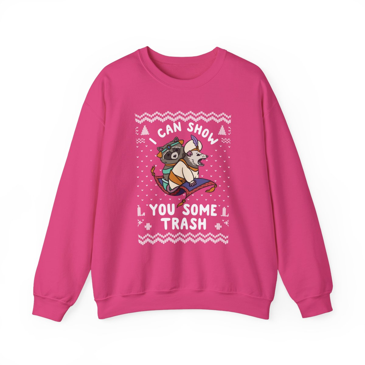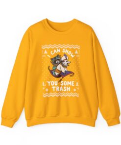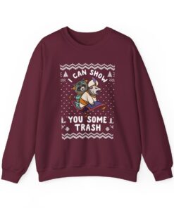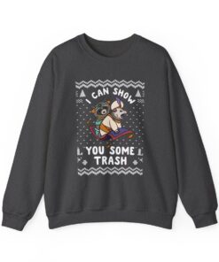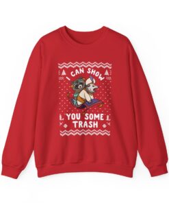 Our I Can Show You Some Trash Ugly Xmas Sweatshirt offers comfort and style and is constructed from high-quality materials. These sweatshirts are perfect outfits for outside activities or curling up by the fireplace because they are produced to keep you warm throughout the winter. Embrace the festive spirit without compromising comfort.