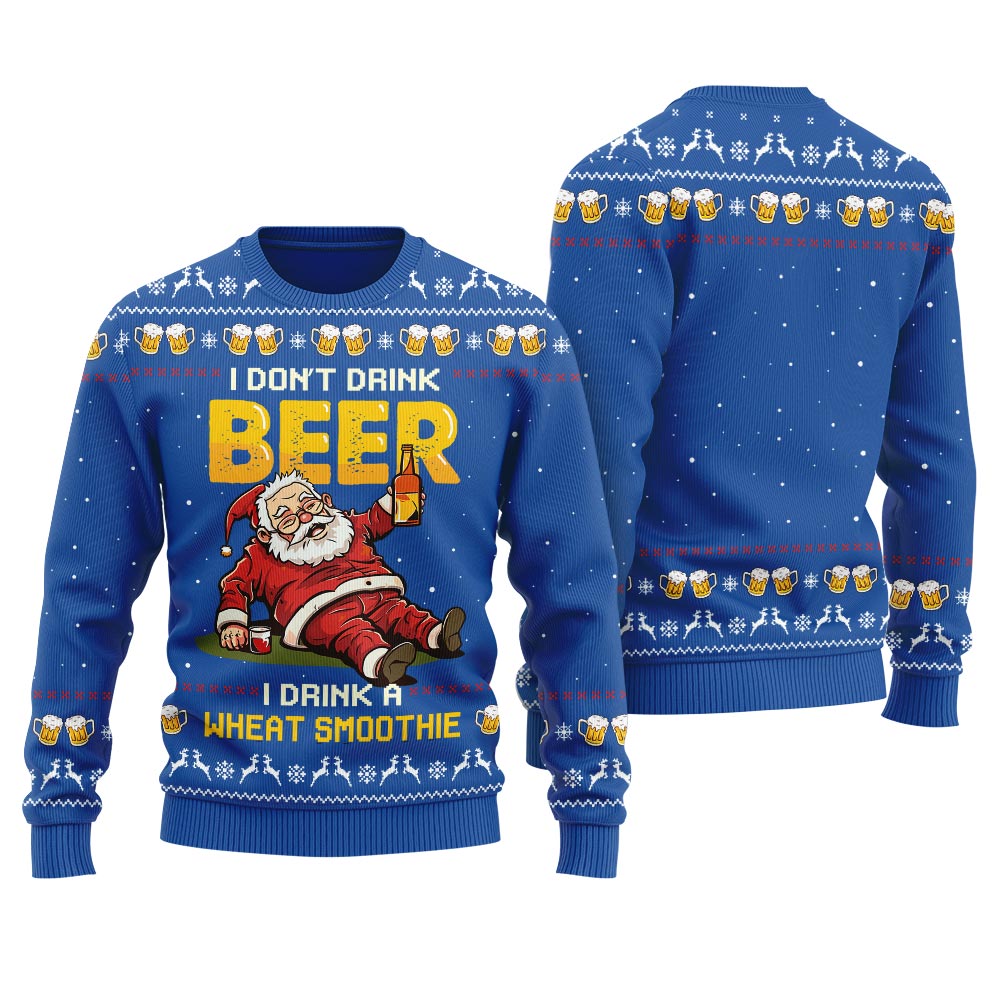 Get festive with our I Don’t Drink Beer I Drink A Wheat Smoothie Ugly Sweater Royal collection! Perfect for holiday parties or cozy nights in.