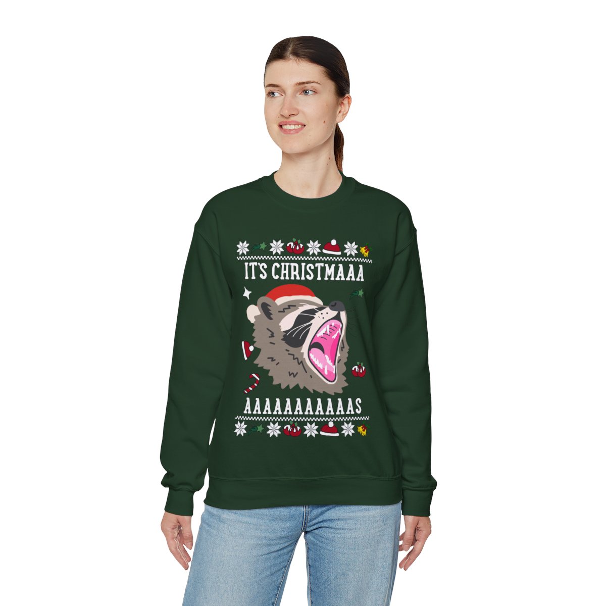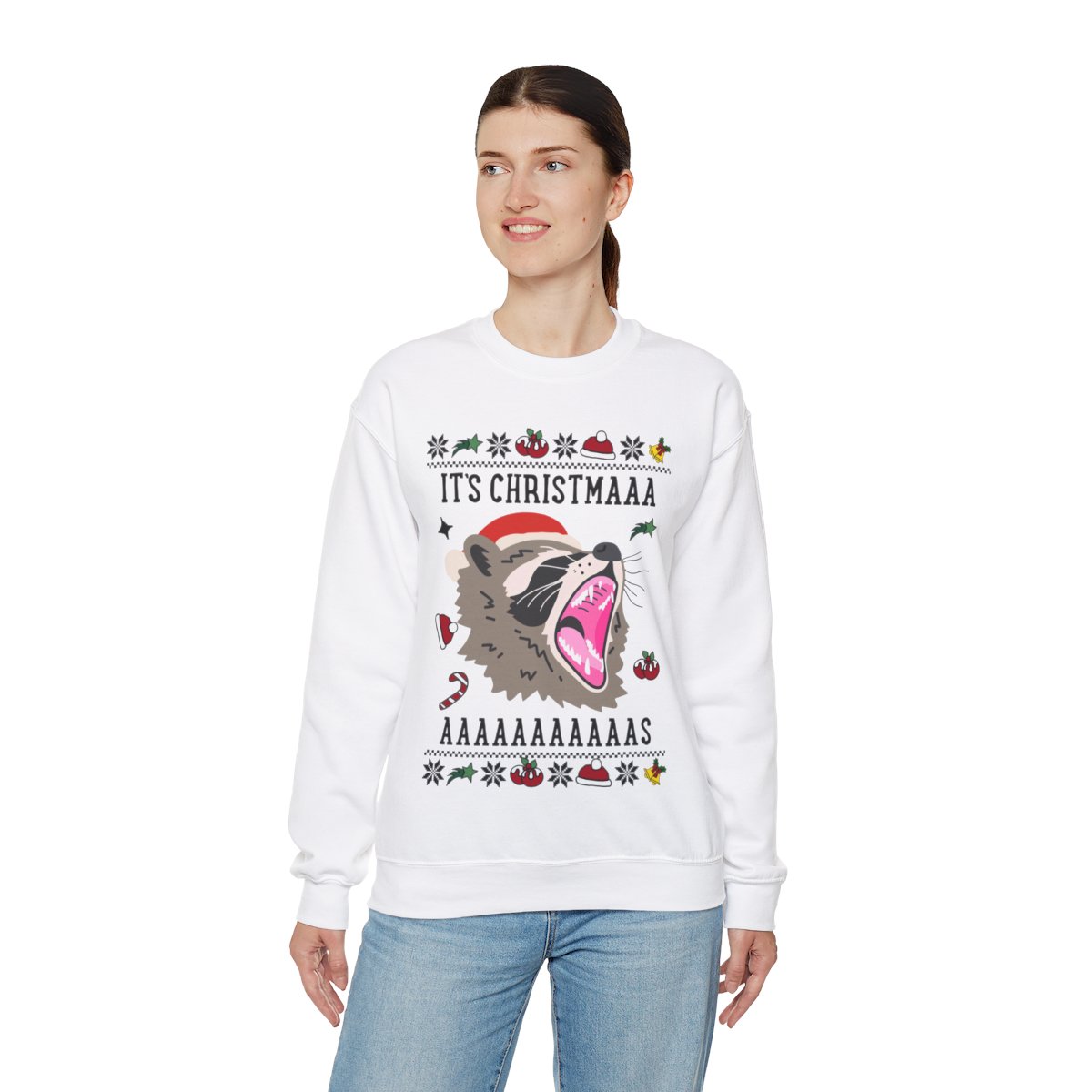 It’s Christmas Screaming Raccoon Christmas Sweatshirt Womens