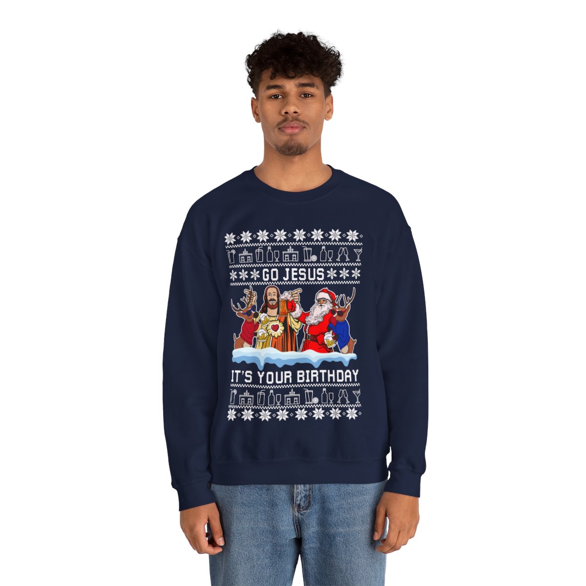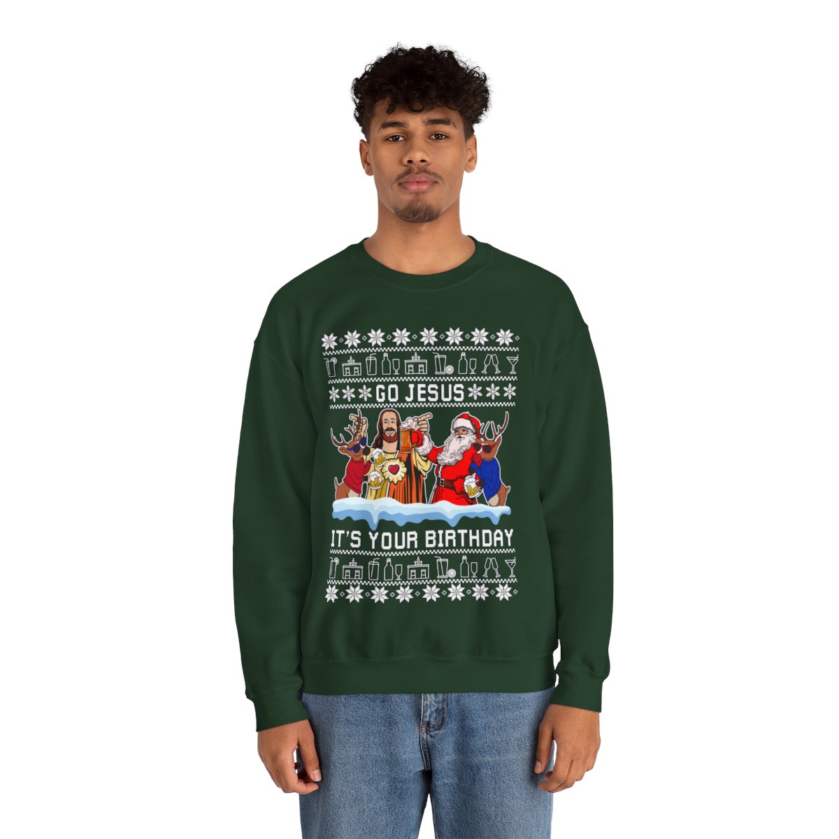 Take action right now since this Jesus Birthday Christmas Sweatshirt For Men is popular and sells out fast. Prepare to draw attention and have a great time this holiday season with our selection of tacky Christmas sweaters!