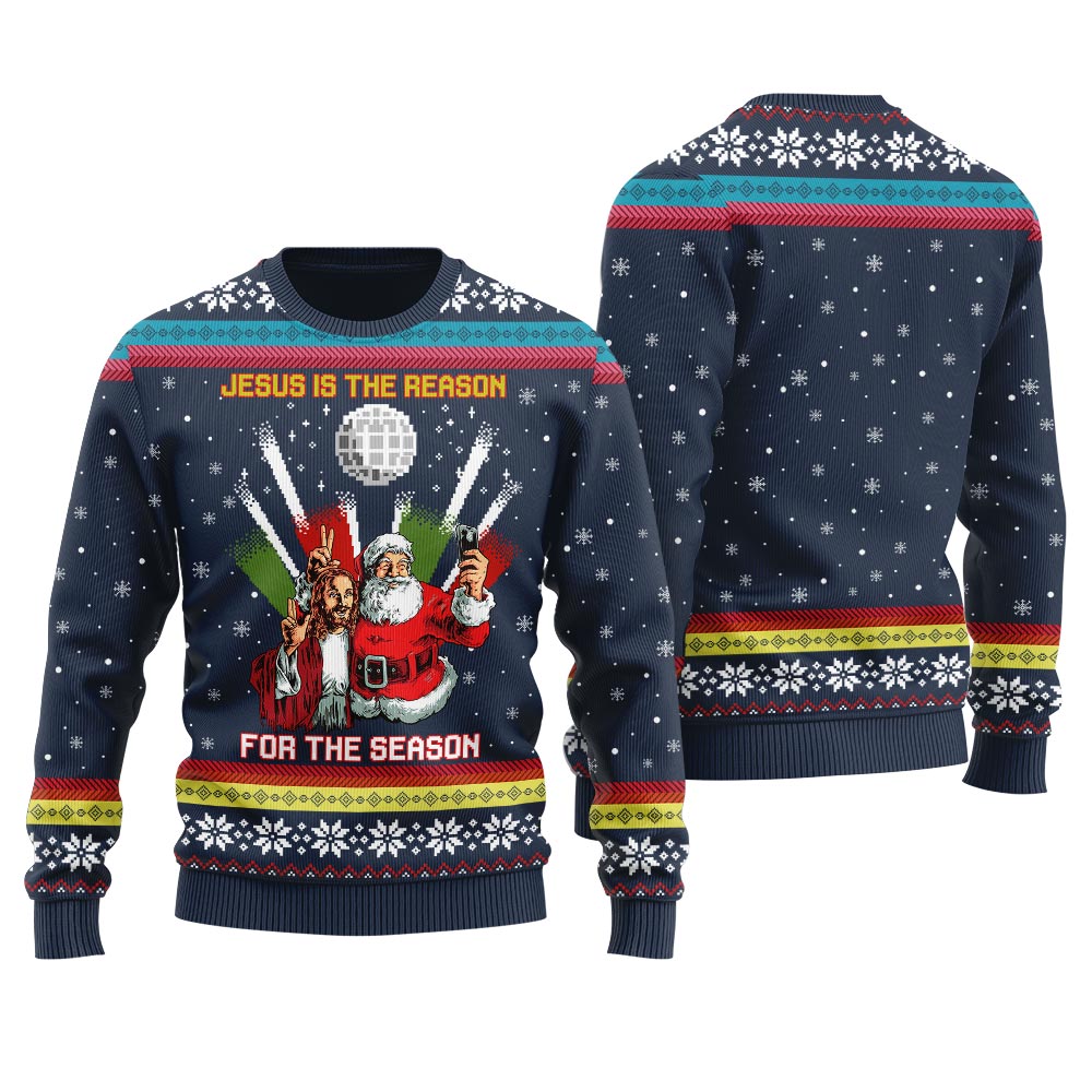 Jesus Is The Reason For The Season Ugly Christmas Sweater Navy