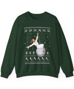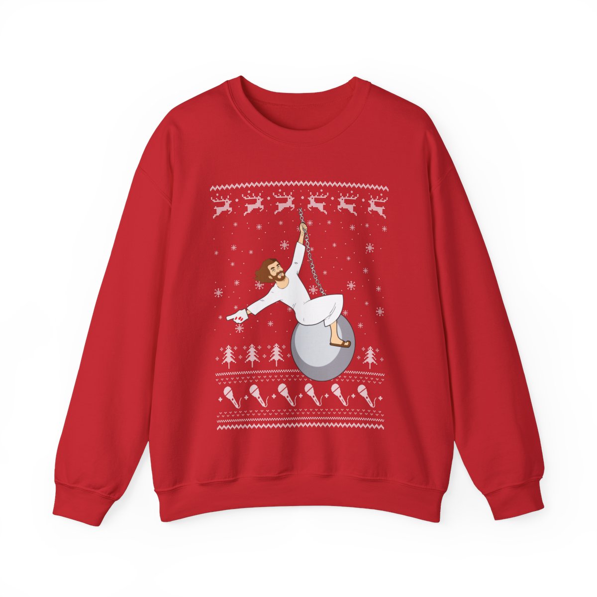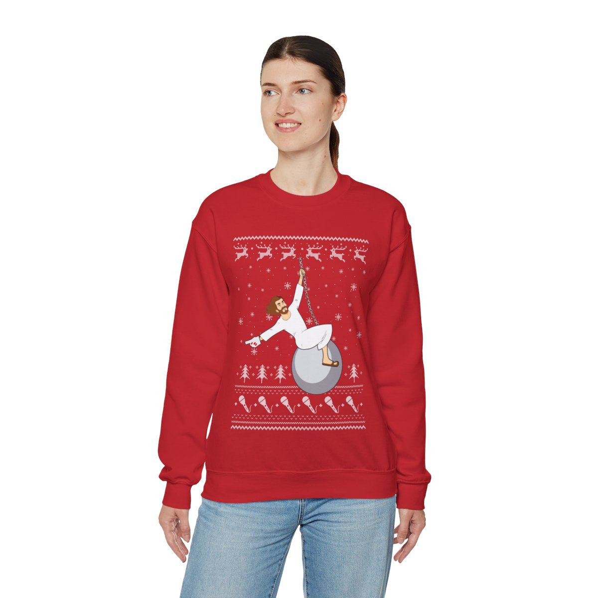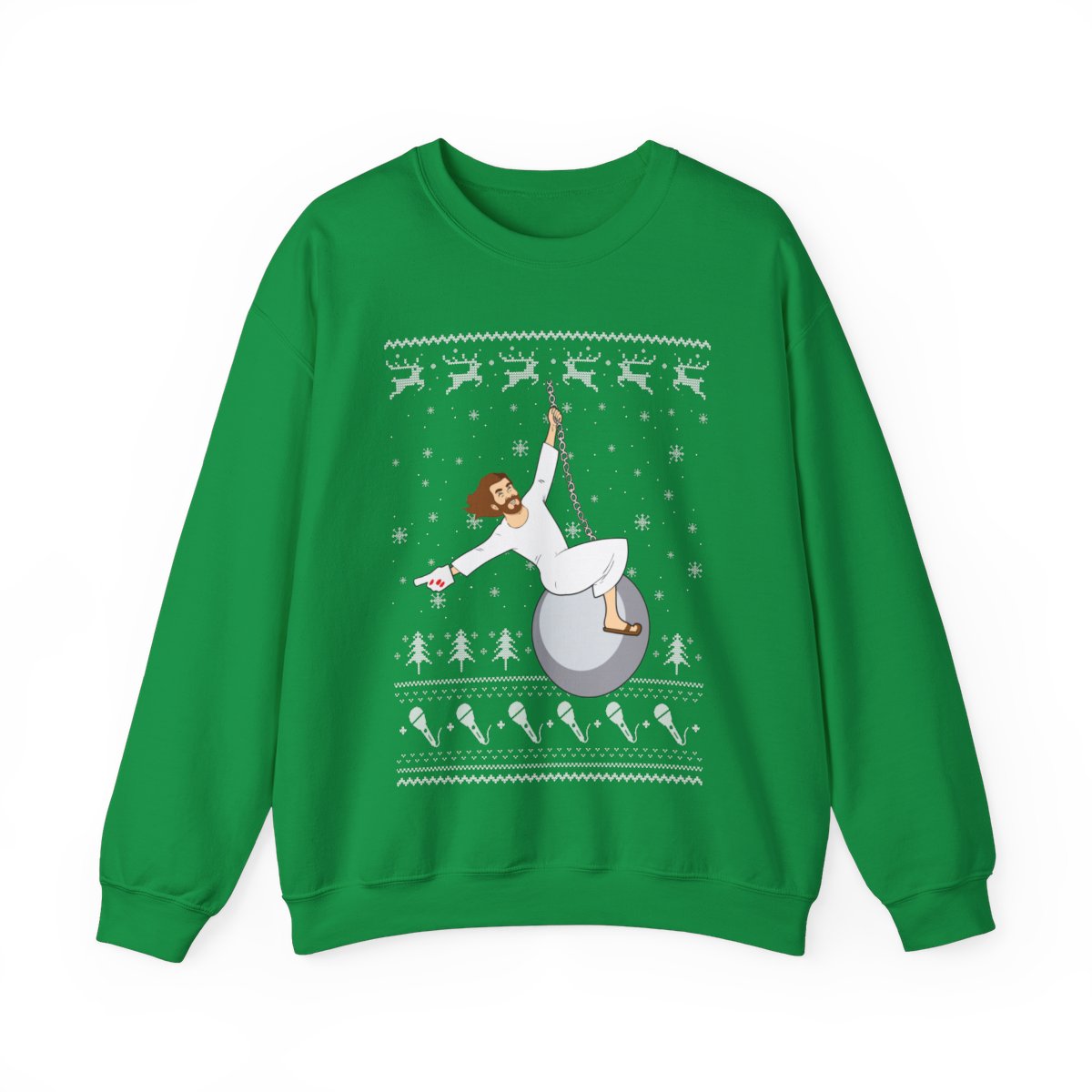 Our Jesus Wrecking Ball Ugly Christmas Sweatshirt Womens is made of premium materials and provide comfort and style. These sweatshirts, which are made to keep you warm throughout the winter, are ideal for spending time outside or cuddling up by the fireplace. Accept the holiday vibe without sacrificing comfort.