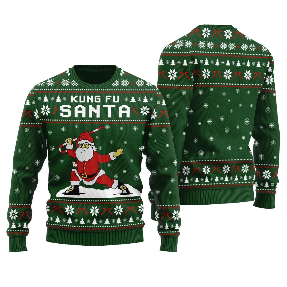 Discover the Ideal Kungfu Panda Santa Ugly Sweater Forest Green