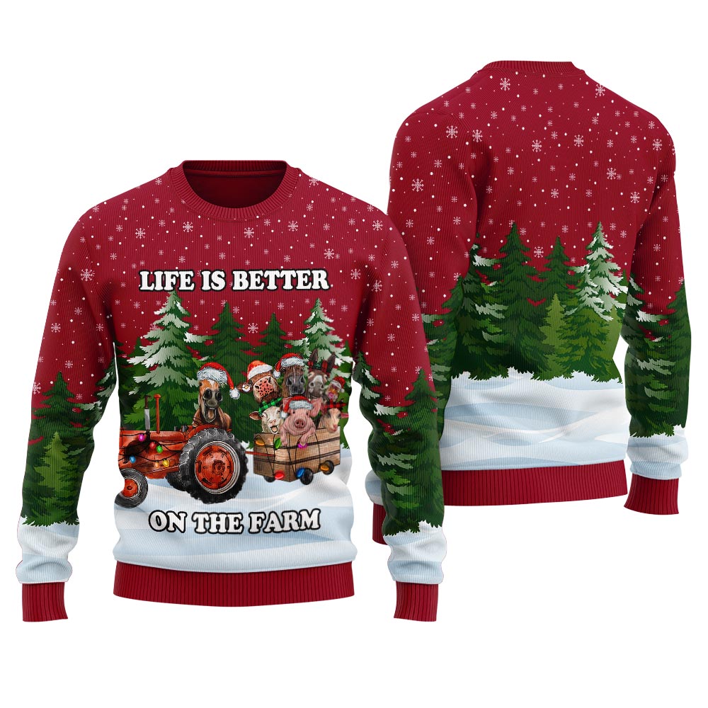 Make Your Holiday More Outstanding With Life Is Better On The Farm Ugly Christmas Sweater Cardinal Red!