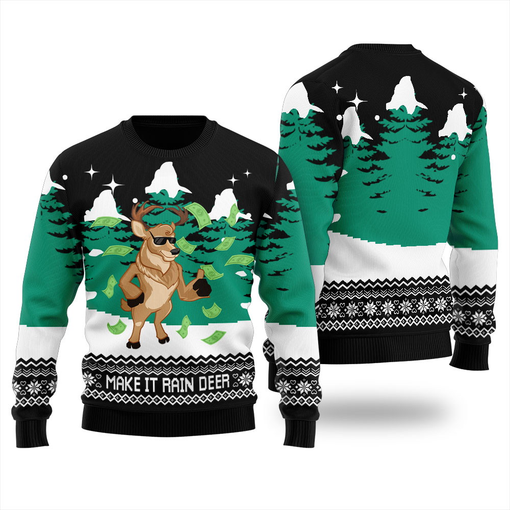 Make Your Holiday More Outstanding With Make It Rain Deer Ugly Christmas Sweater Black!