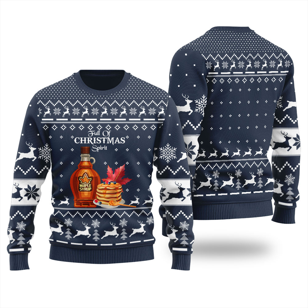 Maple Syrup Full Of Christmas Spirit Ugly Christmas Sweater Navy – Make Your Holiday More Wonderful
