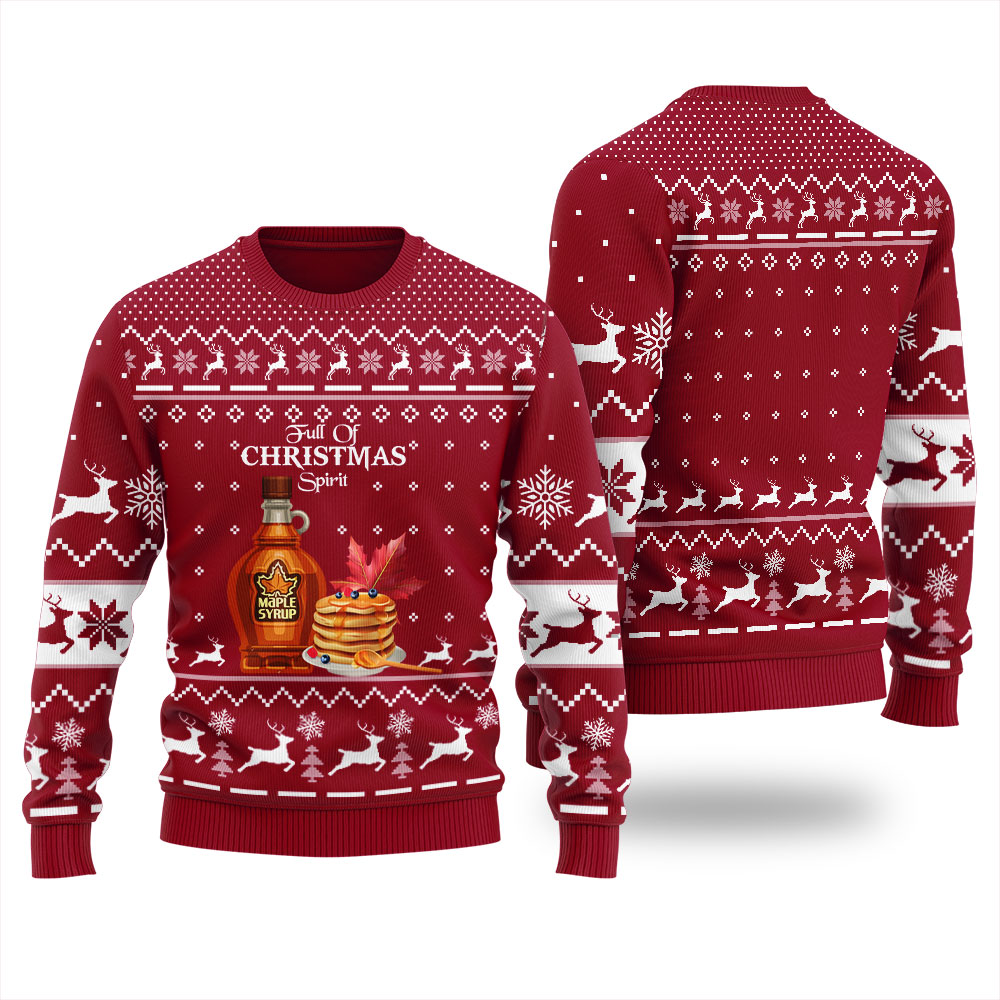 Maple Syrup Full Of Christmas Spirit Ugly Sweater Cardinal Red – Make Your Holiday More Wonderful