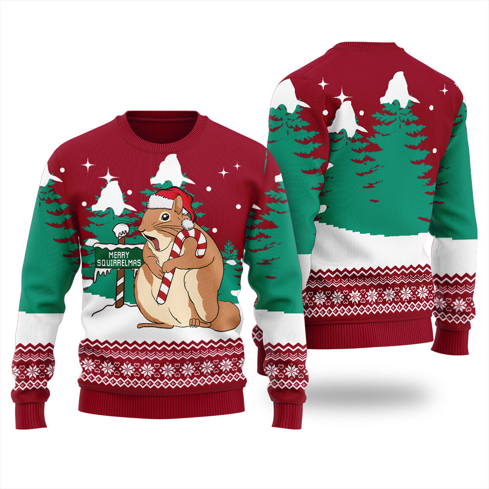 Discover Your Perfect Merry Squirrelmas Ugly Christmas Sweater Cardinal Red!