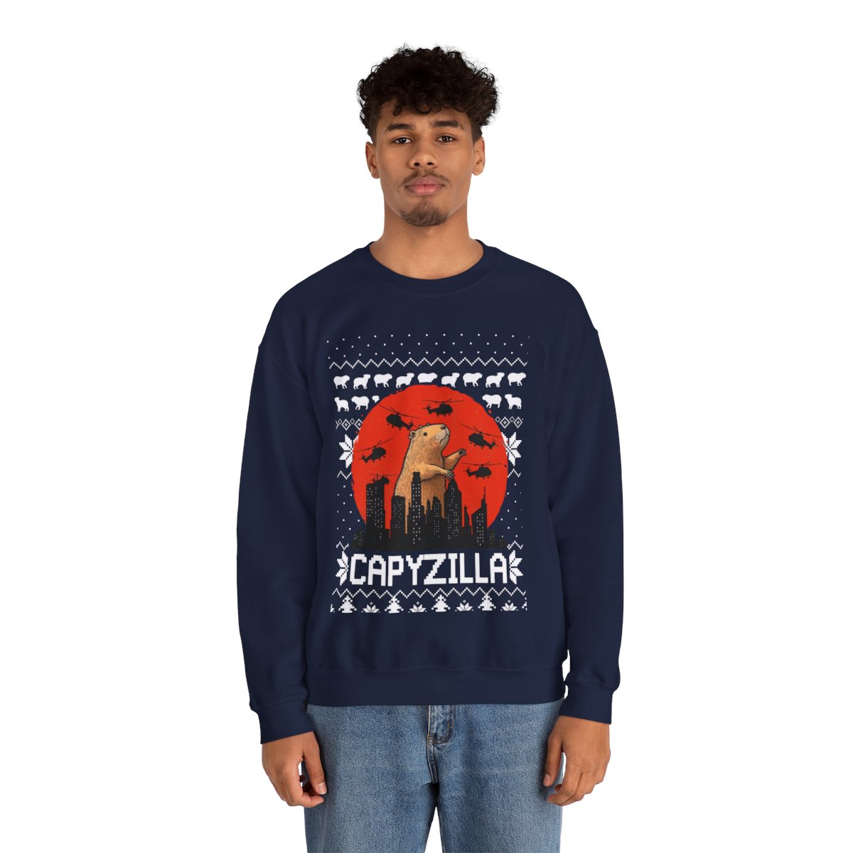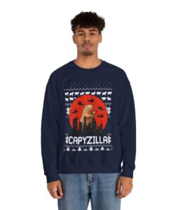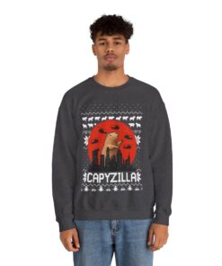 A Christmas sweater that makes you burst into laughter is necessary for joyous gatherings and gift exchange events. This Monster Capybara Christmas Sweatshirt For Men will turn heads and make you the star of every party whether you’re attending a family get-together. It’s also a great way to present for people who like comedy and carefree enjoyment. Observe your dear ones as they unwrap their present and erupt into giggles upon seeing their new best friend’s sweater.