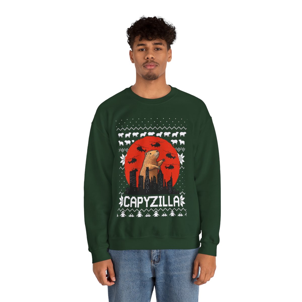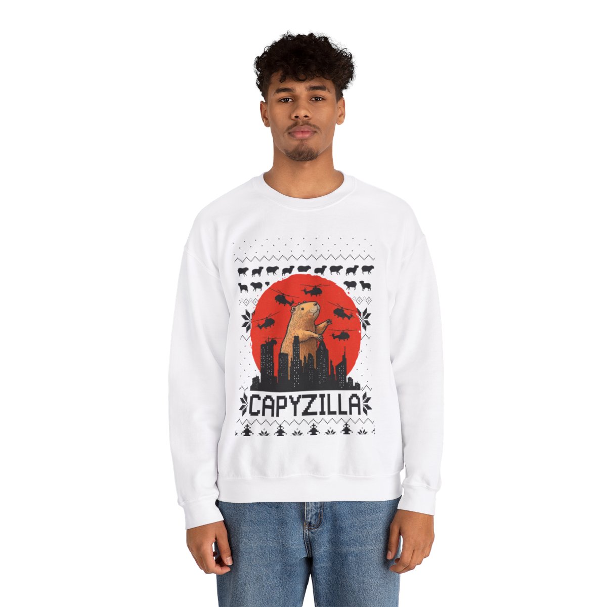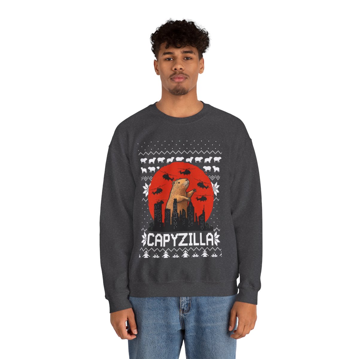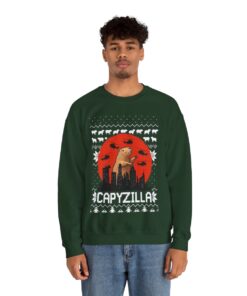 Explore the Quirky Style in Monster Capybara Christmas Sweatshirt For Men