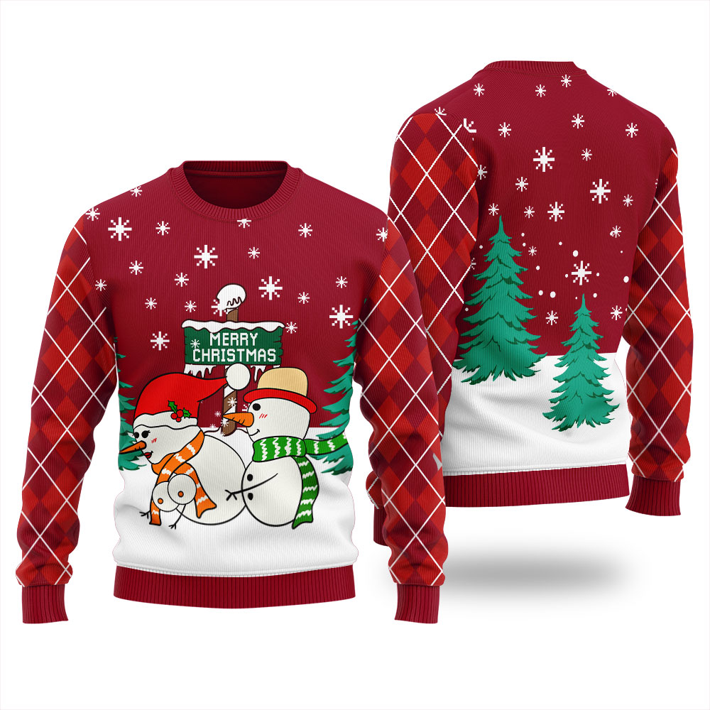 Put Yourself At Ease And Comfortable In Naughty Snowman Couple Ugly Sweater Cardinal Red This Holiday Season