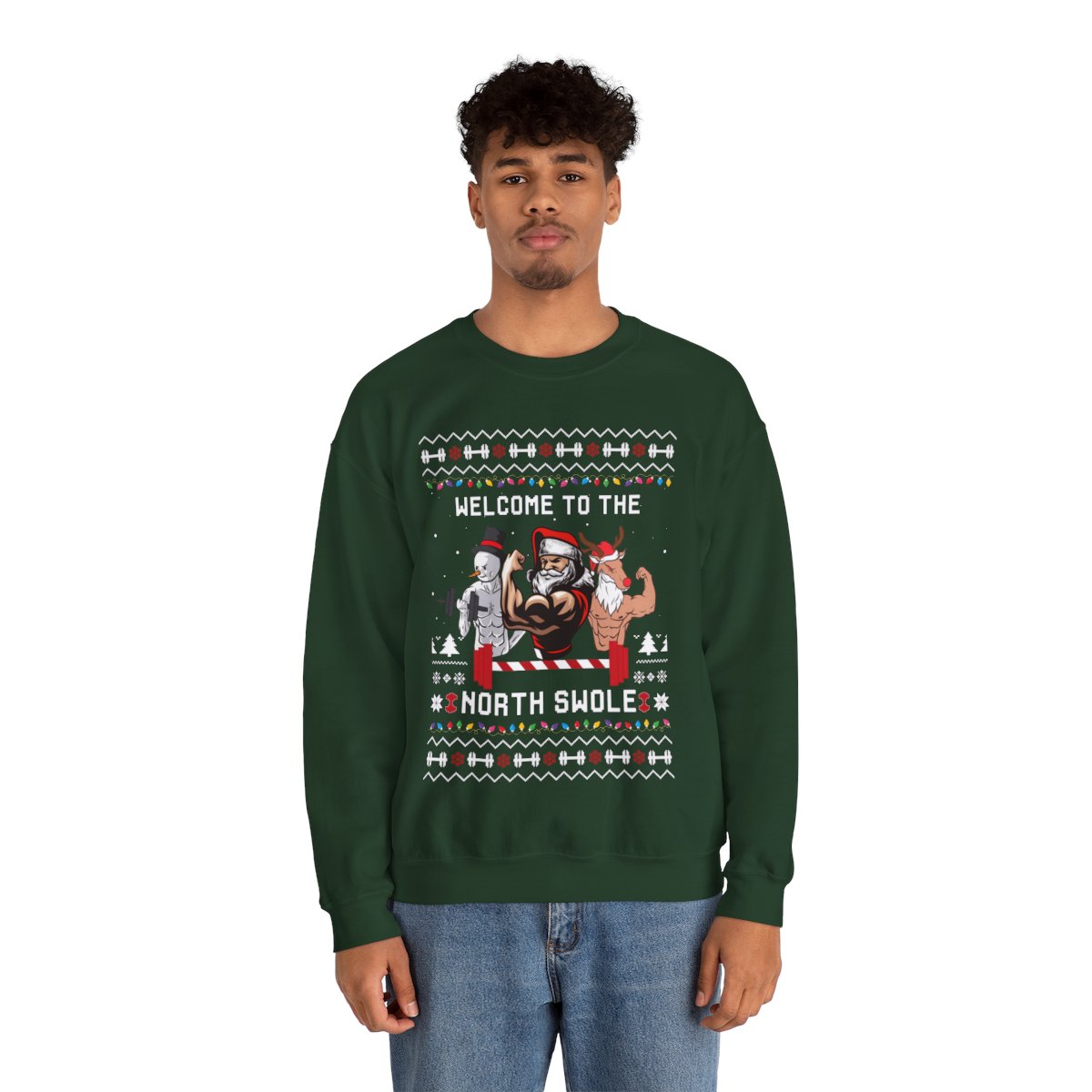 It is North Swole Santa Snowman Reindeer Christmas Sweatshirt For Men’s season to be ugly and funny!