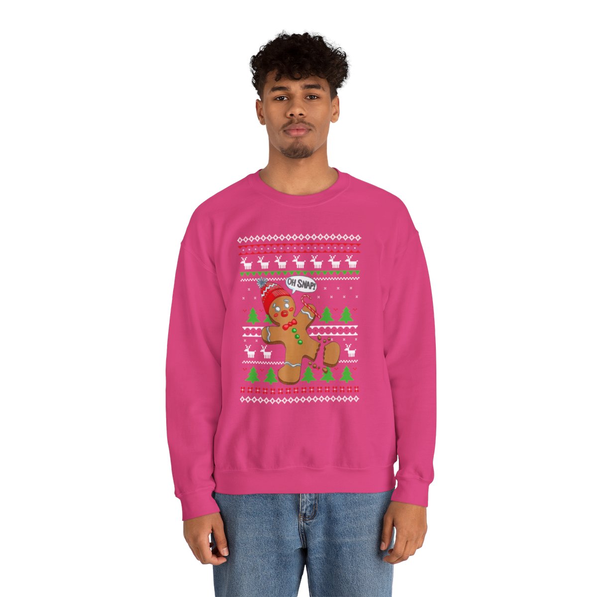 Come see our Oh Snap Gingerbread Ugly Xmas Sweatshirt when you visit our store today. Make a statement, embrace the ugly, and let your festive spirit to radiate in all of its gloriously hideous splendor!