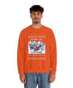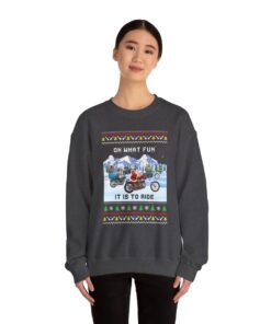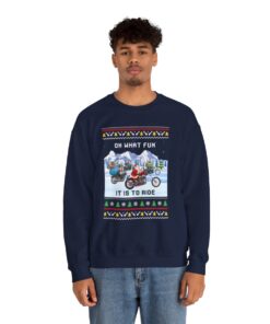 Celebrate the holidays with a twist! Our Oh What Fun It Is To Ride Ugly Christmas Sweatshirt For Unisex is the perfect mix of funny and festive.