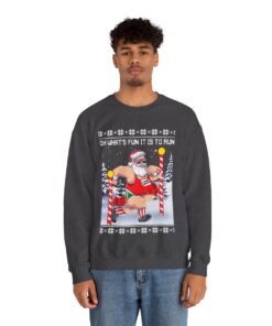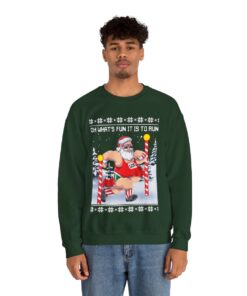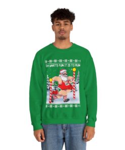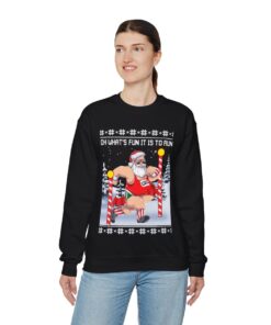 Why not have fun with your friends and family? A Christmas sweater party is an excellent way to get everyone into the holiday spirit. Encourage guests to wear the brightest Oh What Fun It Is To Run Ugly Christmas Sweatshirt For Unisex. To heighten the competition, you might even provide a reward for the ‘ugliest’ sweater.
