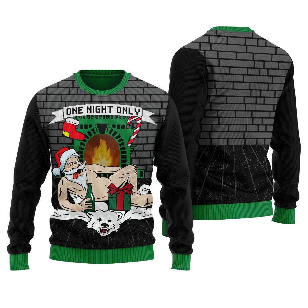 One Night Only Santa Funny Ugly Christmas Sweater Black