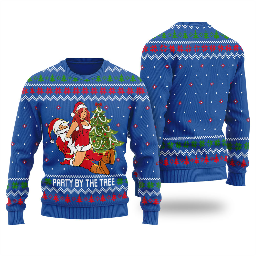 Party By The Tree Naughty Santa Ugly Christmas Sweater Royal