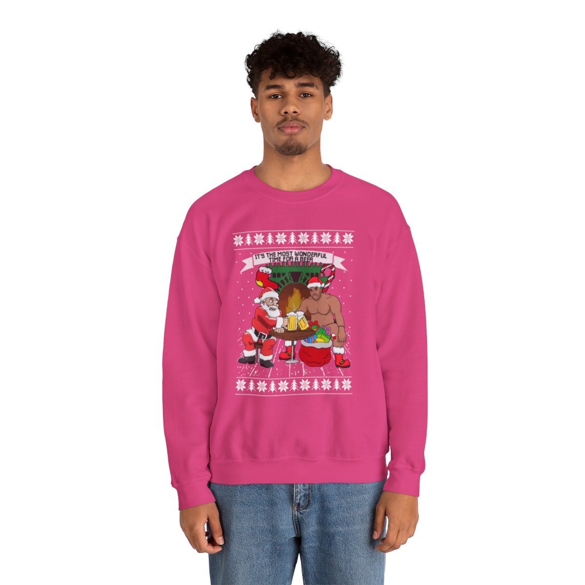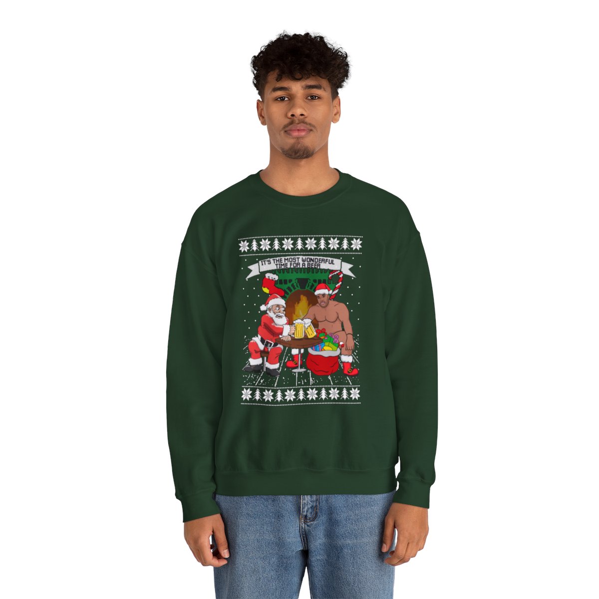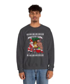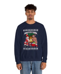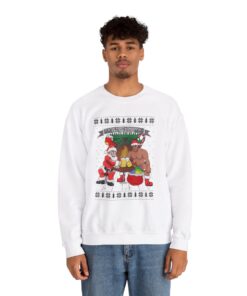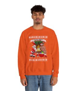 A Xmas Sweater Funny that makes you chuckle is a need for joyous gatherings and gift-giving. This Santa Barry Wood Drinking Beer Ugly Xmas Sweatshirt will turn heads and make you the star of the party whether you’re attending a family get-together or a corporate Christmas party. It’s also a great option for a present for people who like comedy and carefree enjoyment. Observe your dear ones as they open their gifts and erupt into giggles upon seeing their new best friend’s sweater.