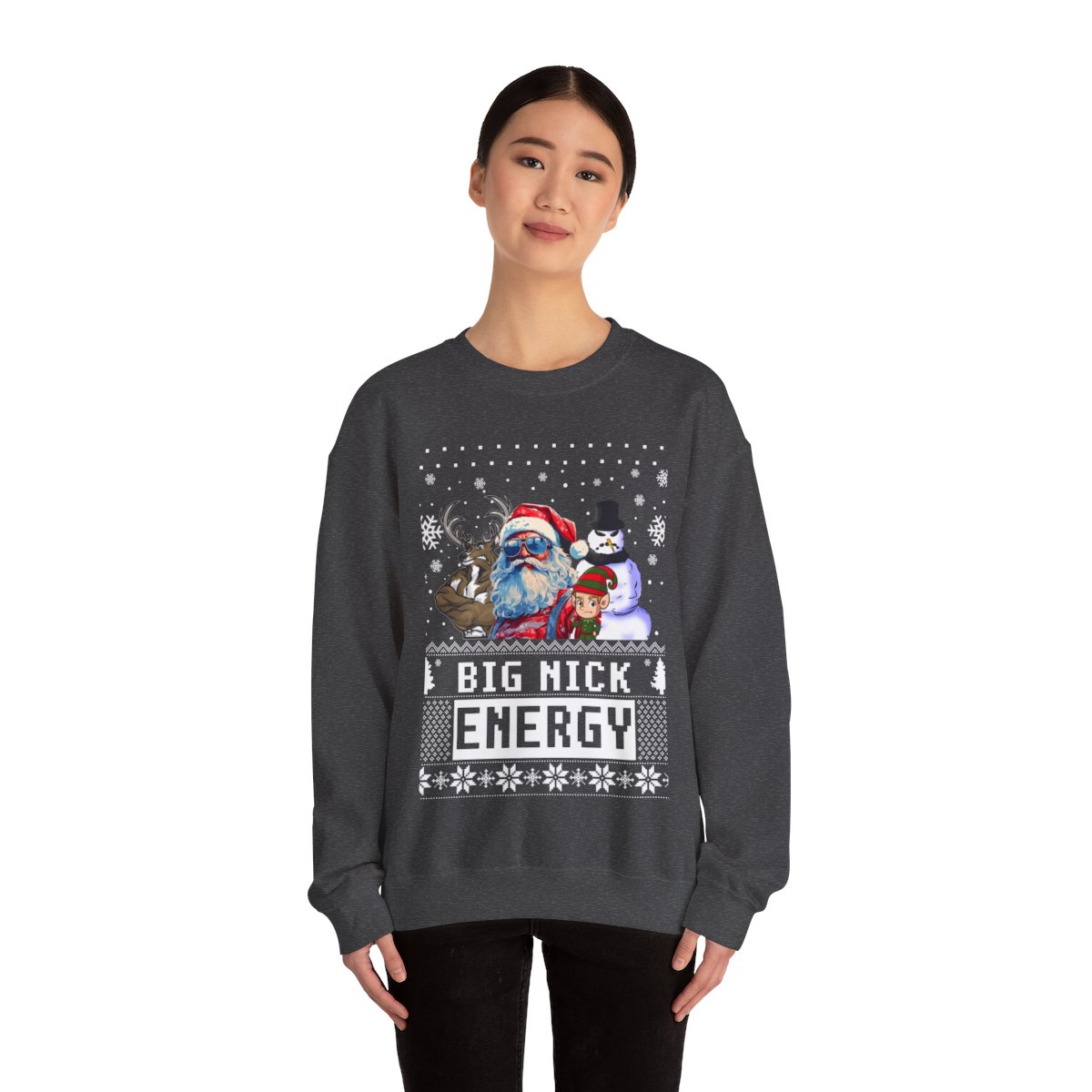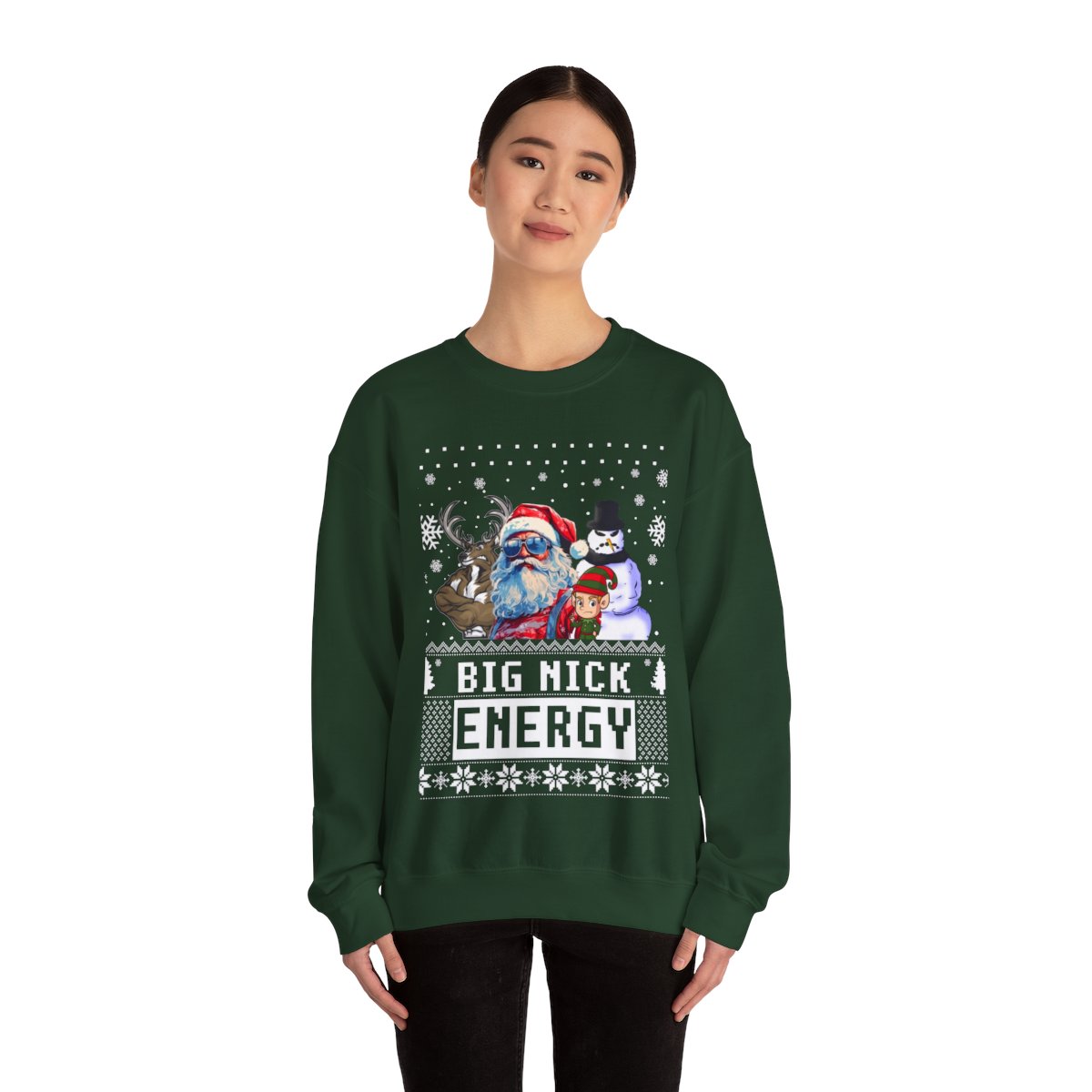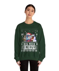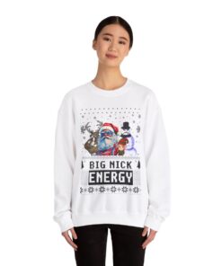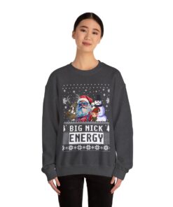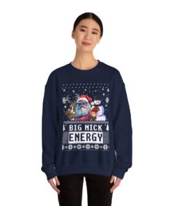 This Santa Big Nick Energy Womens Ugly Christmas Sweatshirt has the power to bring people together and weave memories that shall be cherished for a lifetime. Why settle for a boring ugly sweater when you can don one that sparks conversations and brings a sparkle to the eye? Our Santa Big Nick Energy Womens Ugly Christmas Sweatshirt has been meticulously crafted with utmost care to offer not only comfort but also a generous dose of panache. The distinctive and humorous Ugly Xmas Sweatshirt is guaranteed to capture the attention of all who look at it!