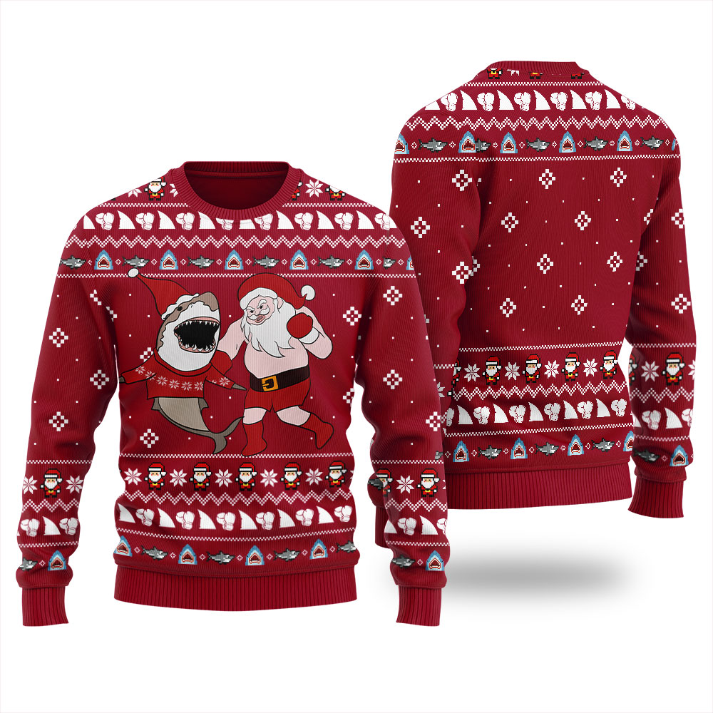 Make Your Holiday More Outstanding With Santa Dancing With Shark Ugly Christmas Sweater Cardinal Red!