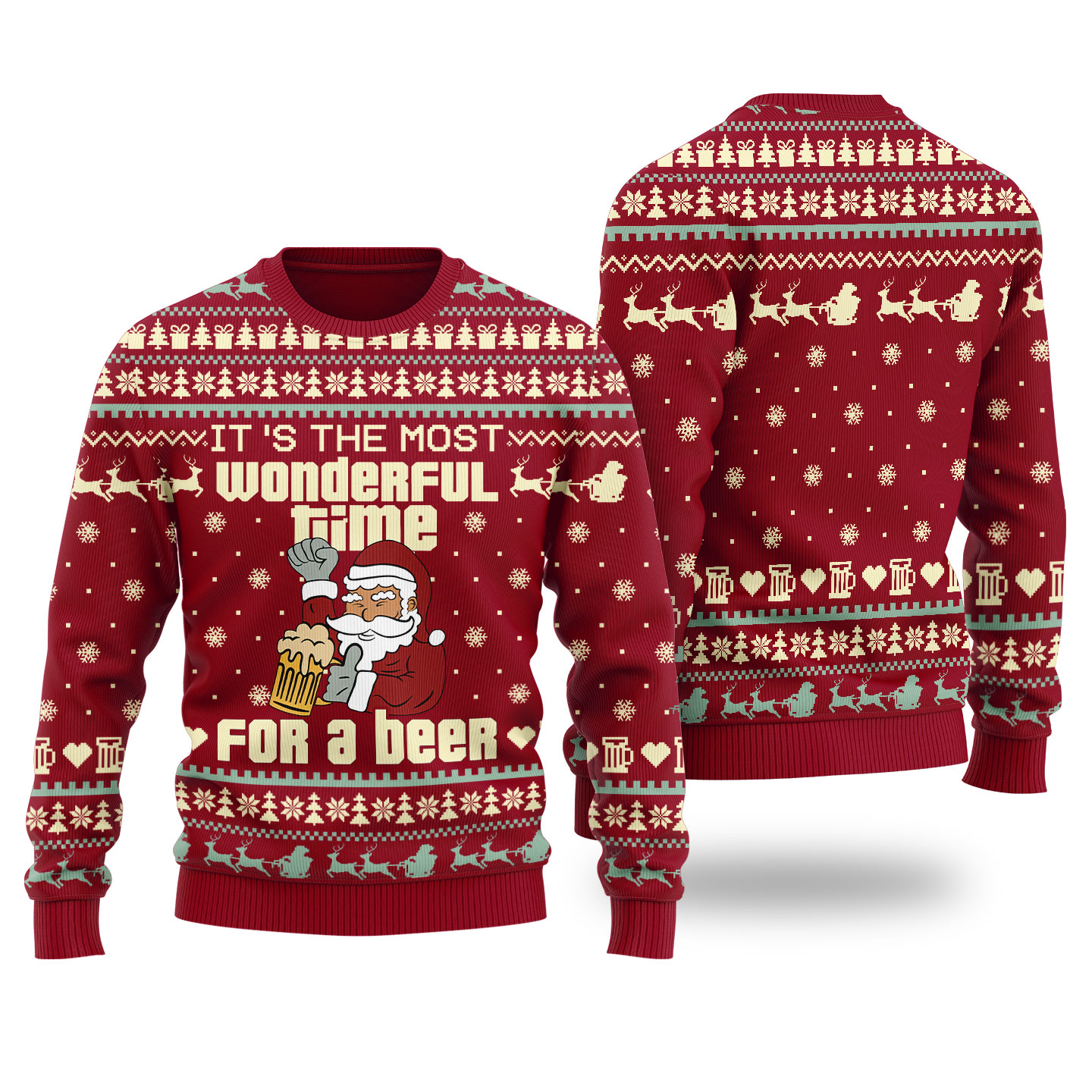 Make Your Holiday More Outstanding With Santa Drinking Beer Ugly Christmas Sweater Cardinal Red!