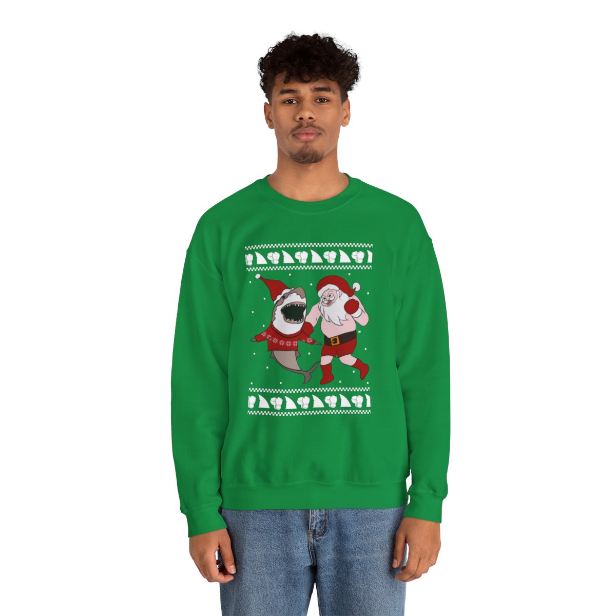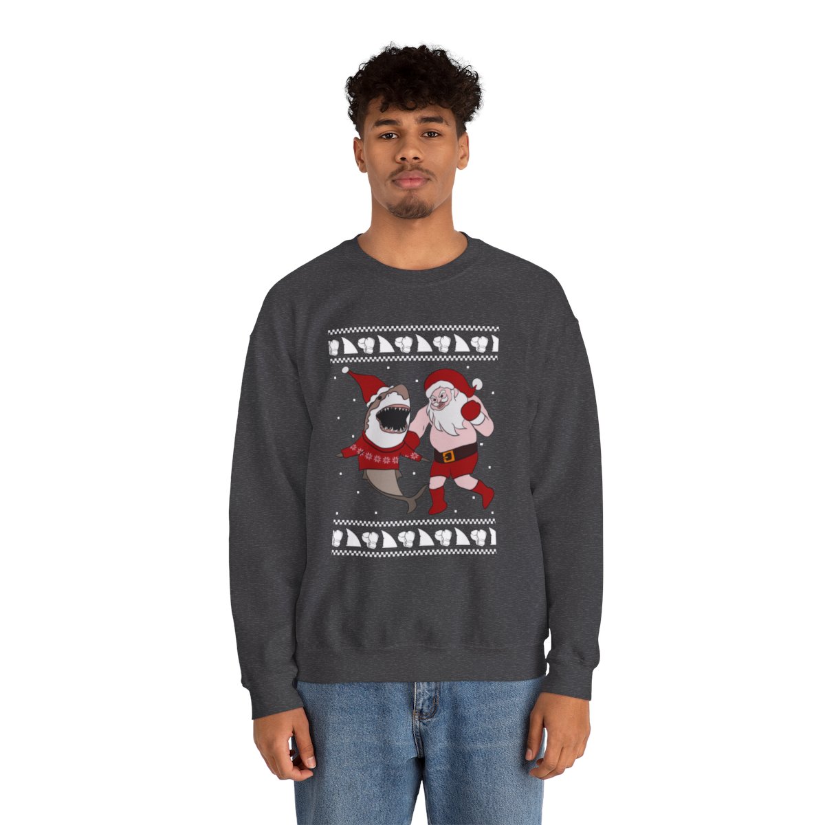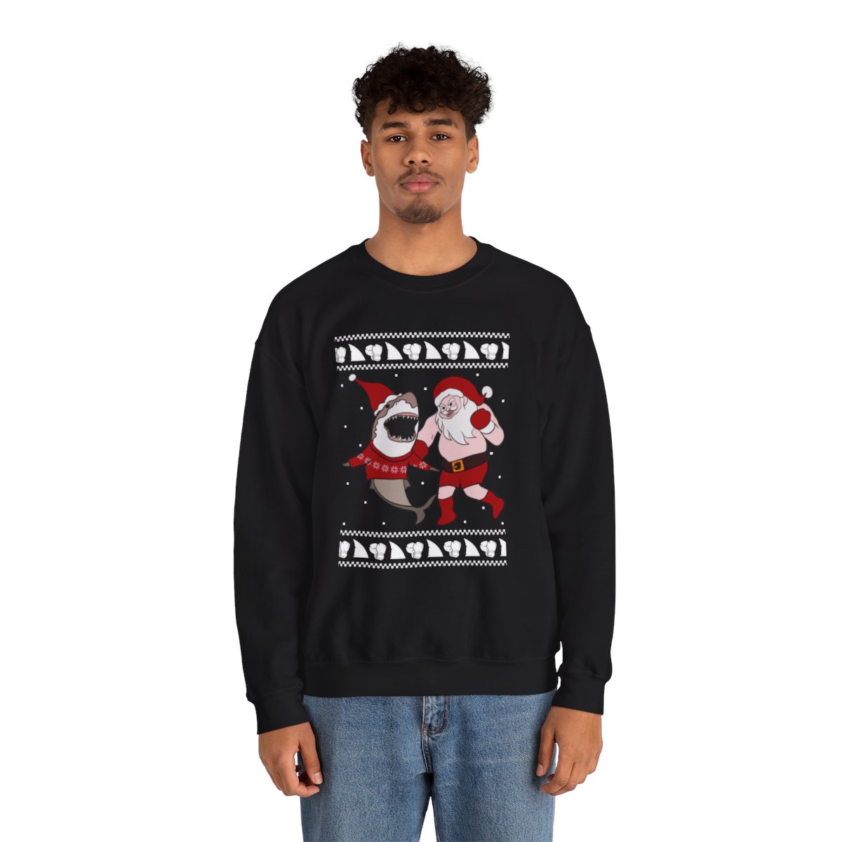 Santa Fighting Shark Ugly Xmas Sweatshirt